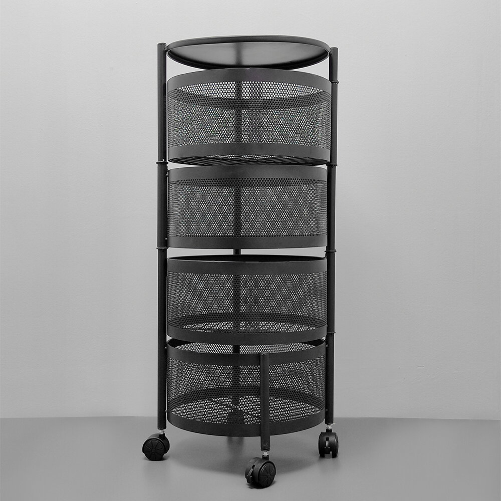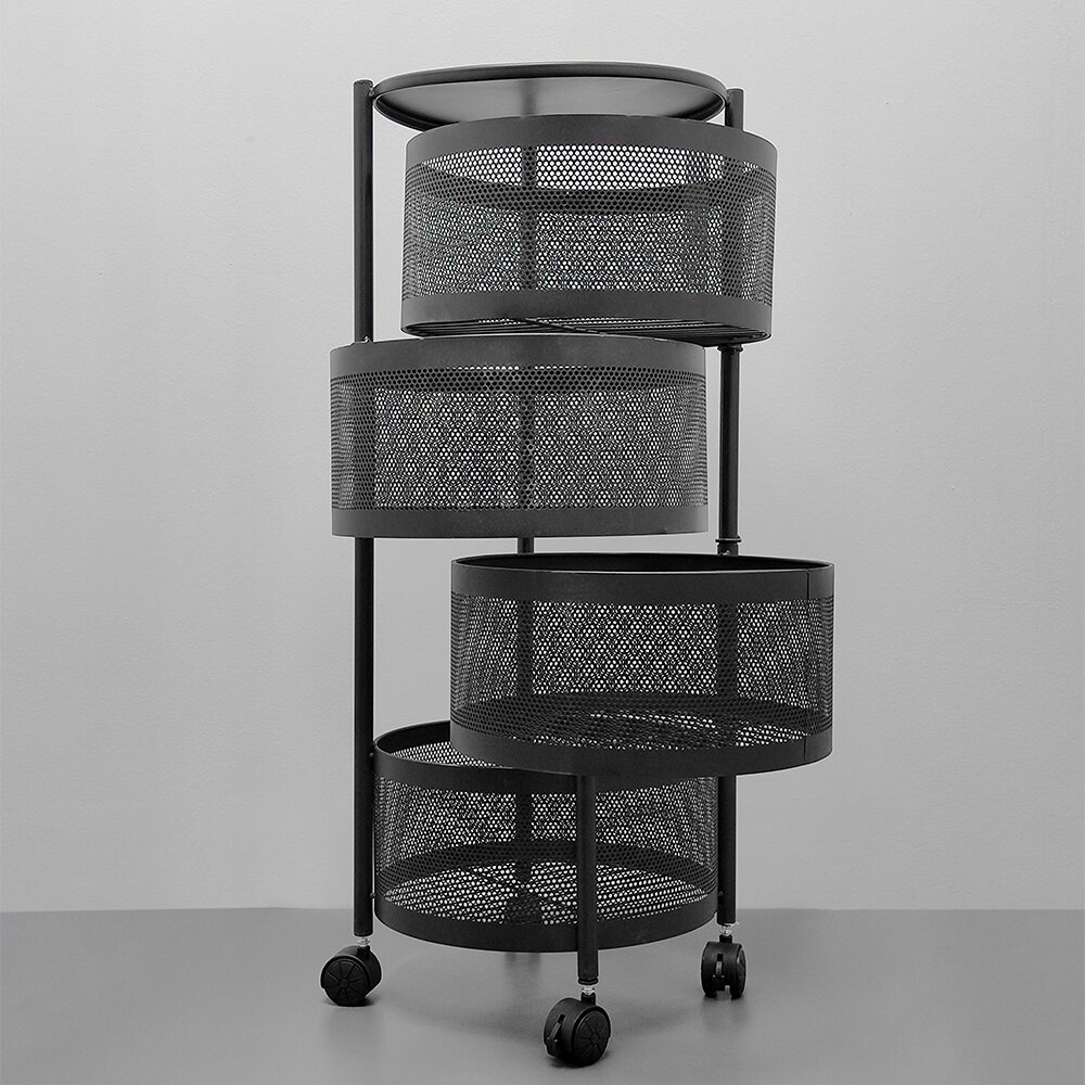 Этажерка металлическая 4-х ярусная 32*32*73 круглая на колесах поворотная Baizheng, черный интересное: