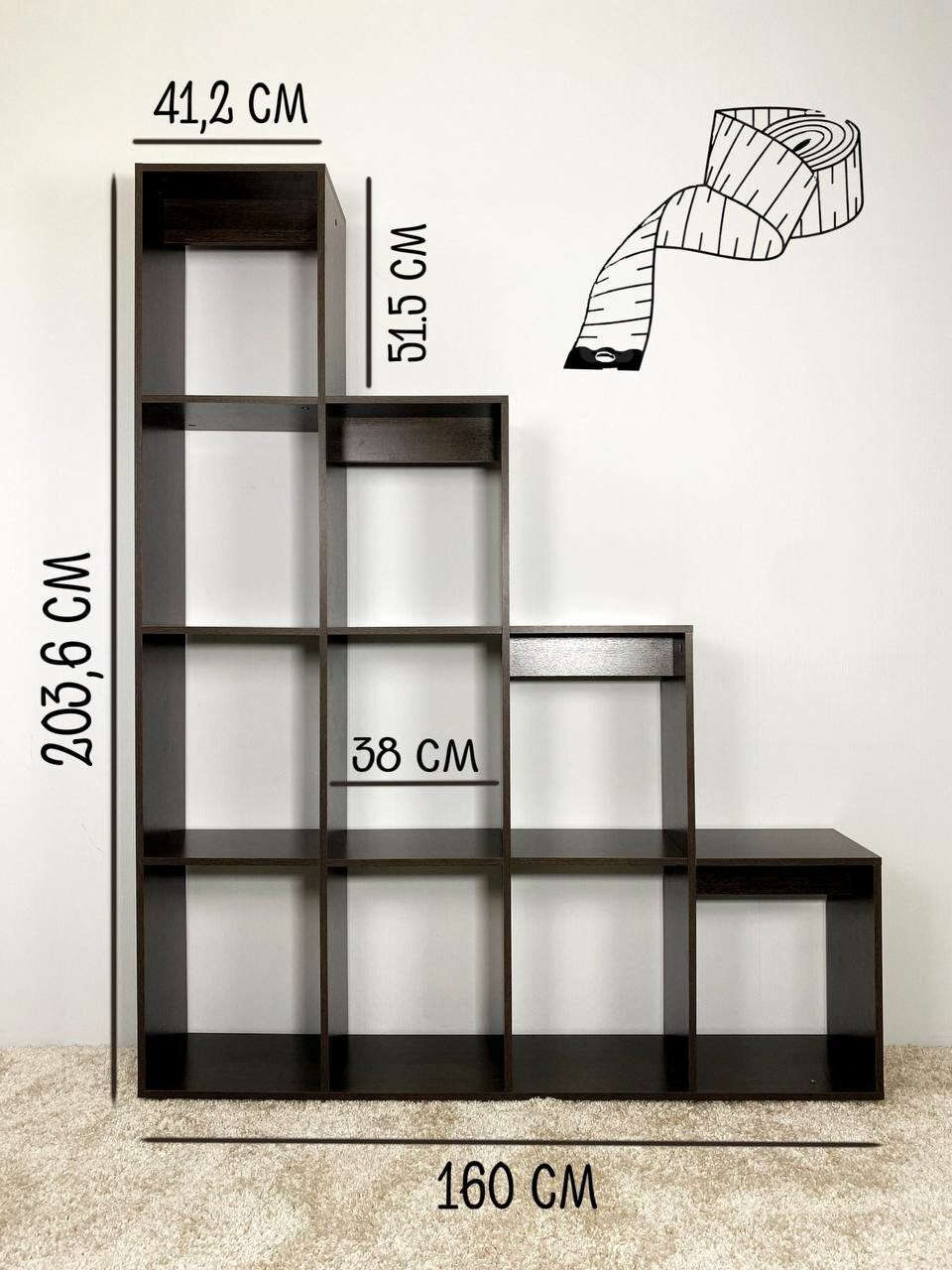Стеллаж-перегородка для зонирования Кантри 160х204х29,5 см, 10 полок, ЛДСП, венге