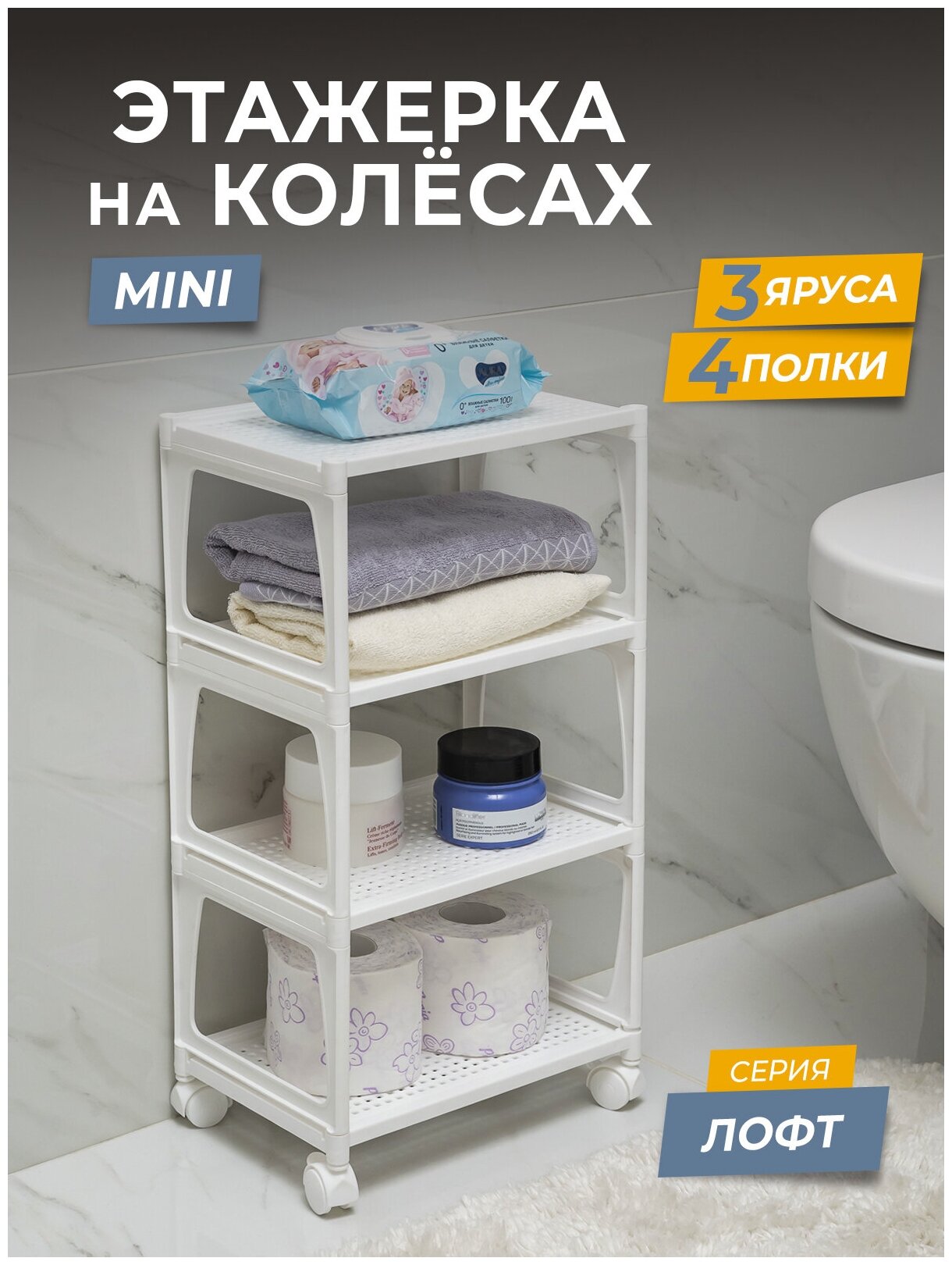 Этажерка для хранения на колесах маленькая Лофт Mini, цвет белый