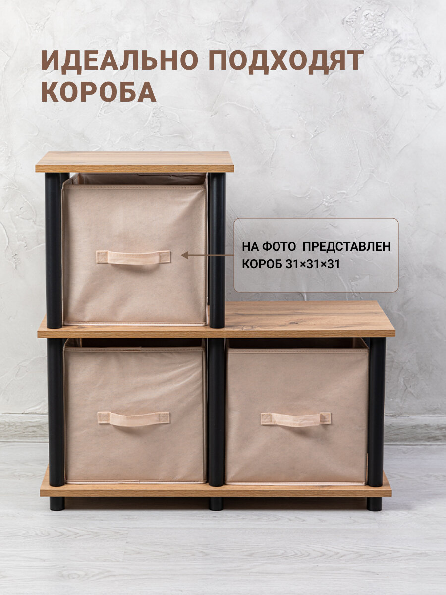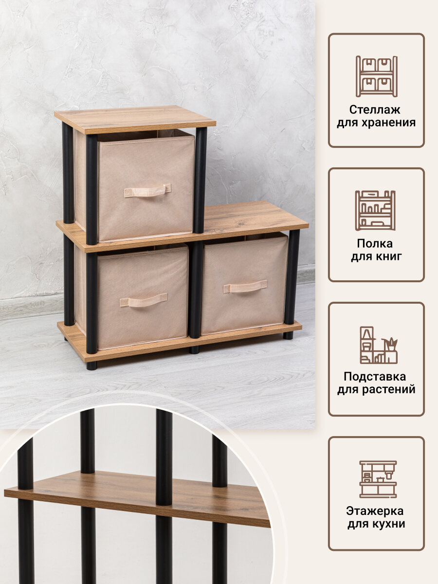 Стеллаж деревянный GASTRORAG 0770/3, полка напольная, этажерка для кухни, ванной, гостиной, спальни, 3 полки ЛДСП, размеры 77 х 30 х 77 см