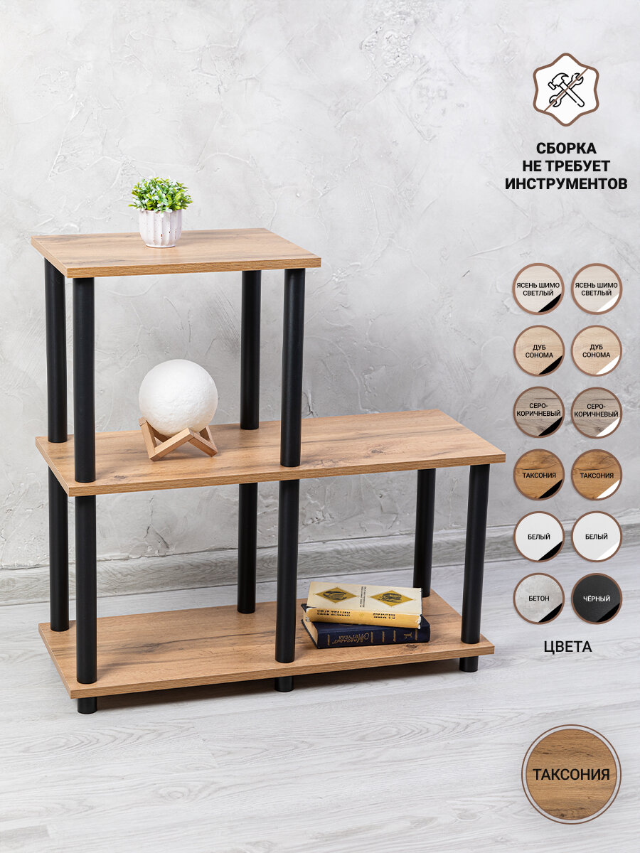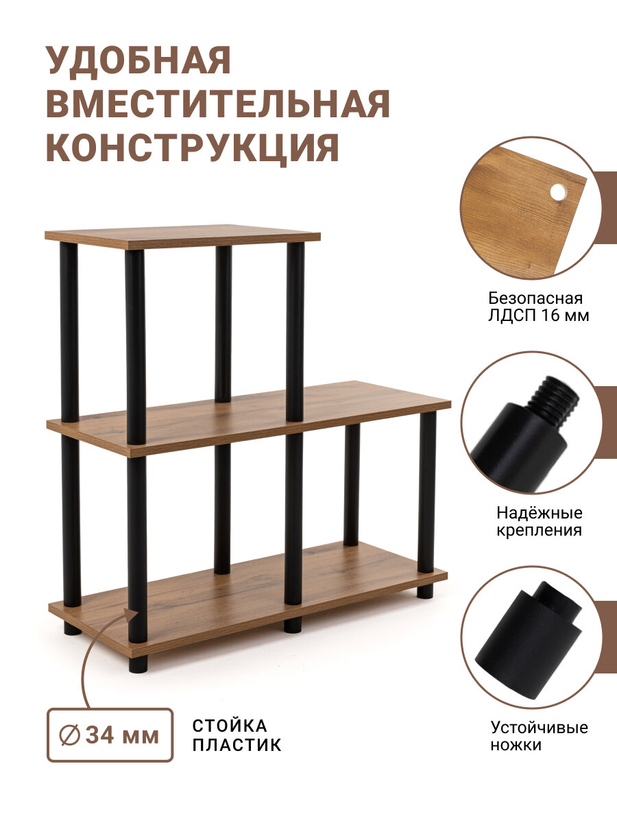 | Комплектация | 3 полки из ЛДСП 16 мм, стоек 10шт, ножки пластиковые 6шт, инструкция по сборке 1шт |