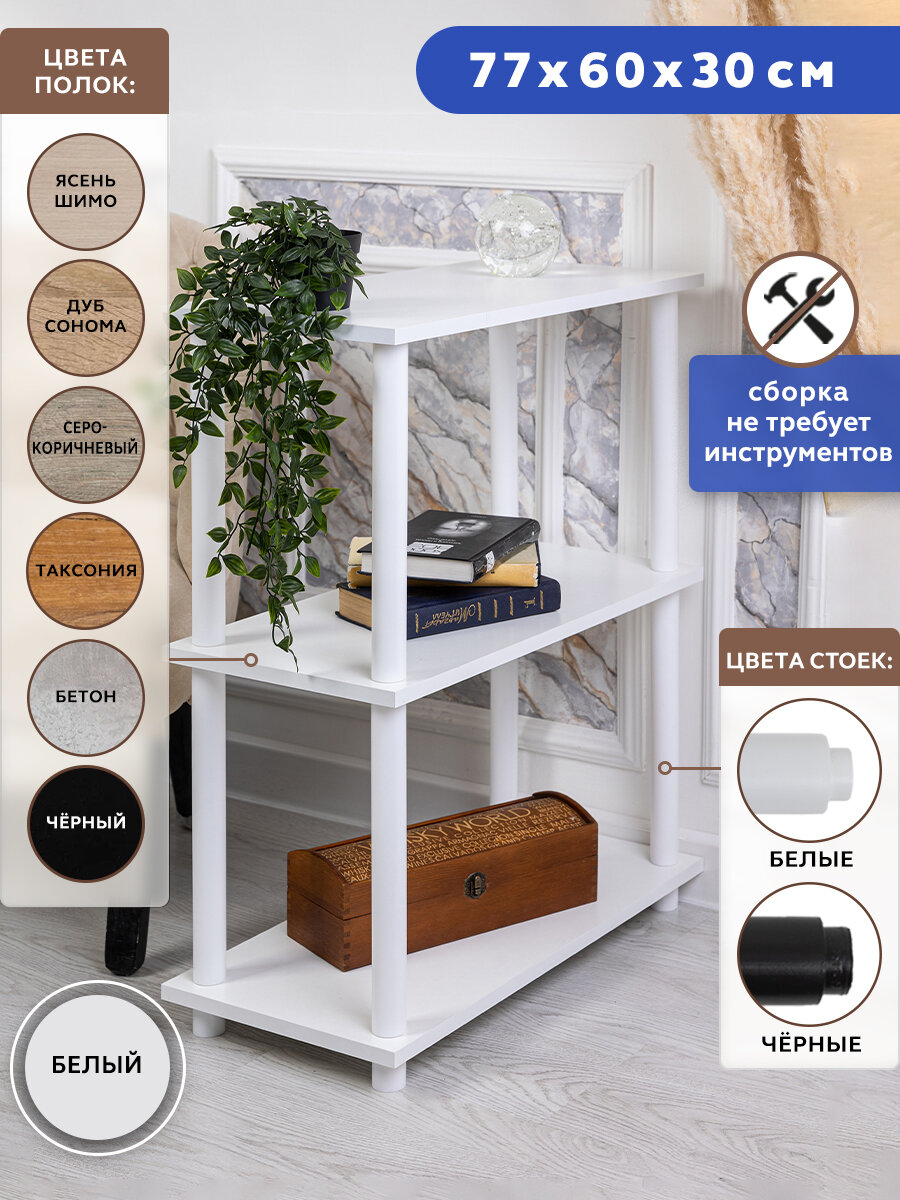 Купить Стеллаж деревянный GASTRORAG 0770/3W, полка напольная, этажерка для кухни, ванной, гостиной, спальни, 3 полки ЛДСП, размеры 60 х 30 х 77 см