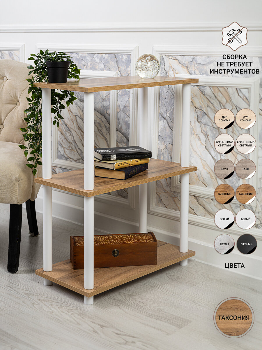 Стеллаж деревянный GASTRORAG 0770/3W, полка напольная, этажерка для кухни, ванной, гостиной, спальни, 3 полки ЛДСП, размеры 60 х 30 х 77 см
