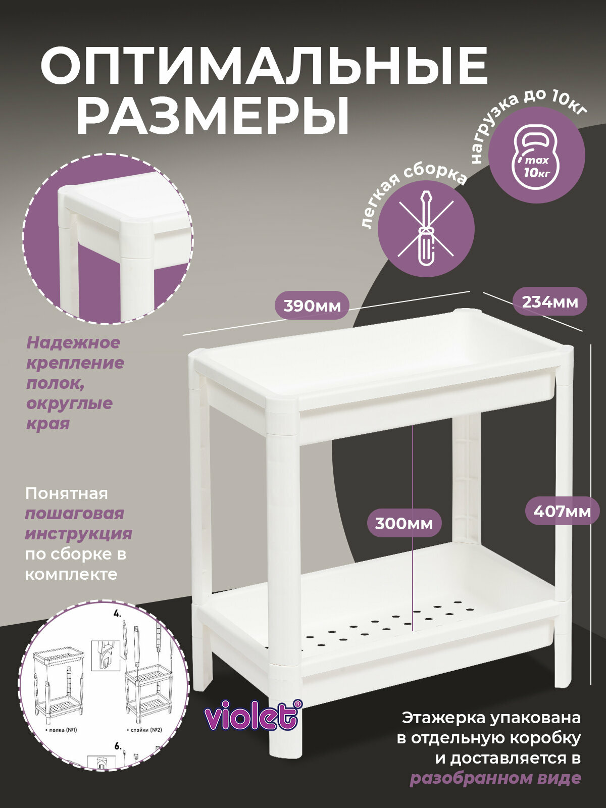 Ниже Вы можете прочитать отзывы на Этажерка Violet Vikea, 2 полки, 390 x 234 x 407 мм, пластик, белая, ознакомится с подробными характеристиками, посмотреть интересные обзоры и фотографии на Этажерка Violet Vikea, 2 полки, 390 x 234 x 407 мм, пластик, белая.