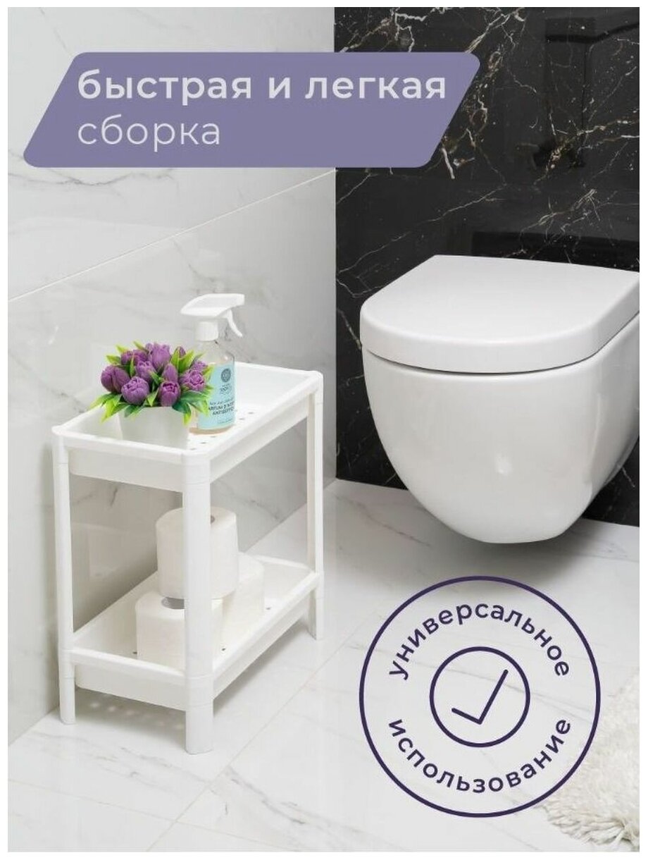Этажерка Violet для хранения 2х ярусная VIKEA широкая, цвет белый / стеллаж для кухни и ванной
