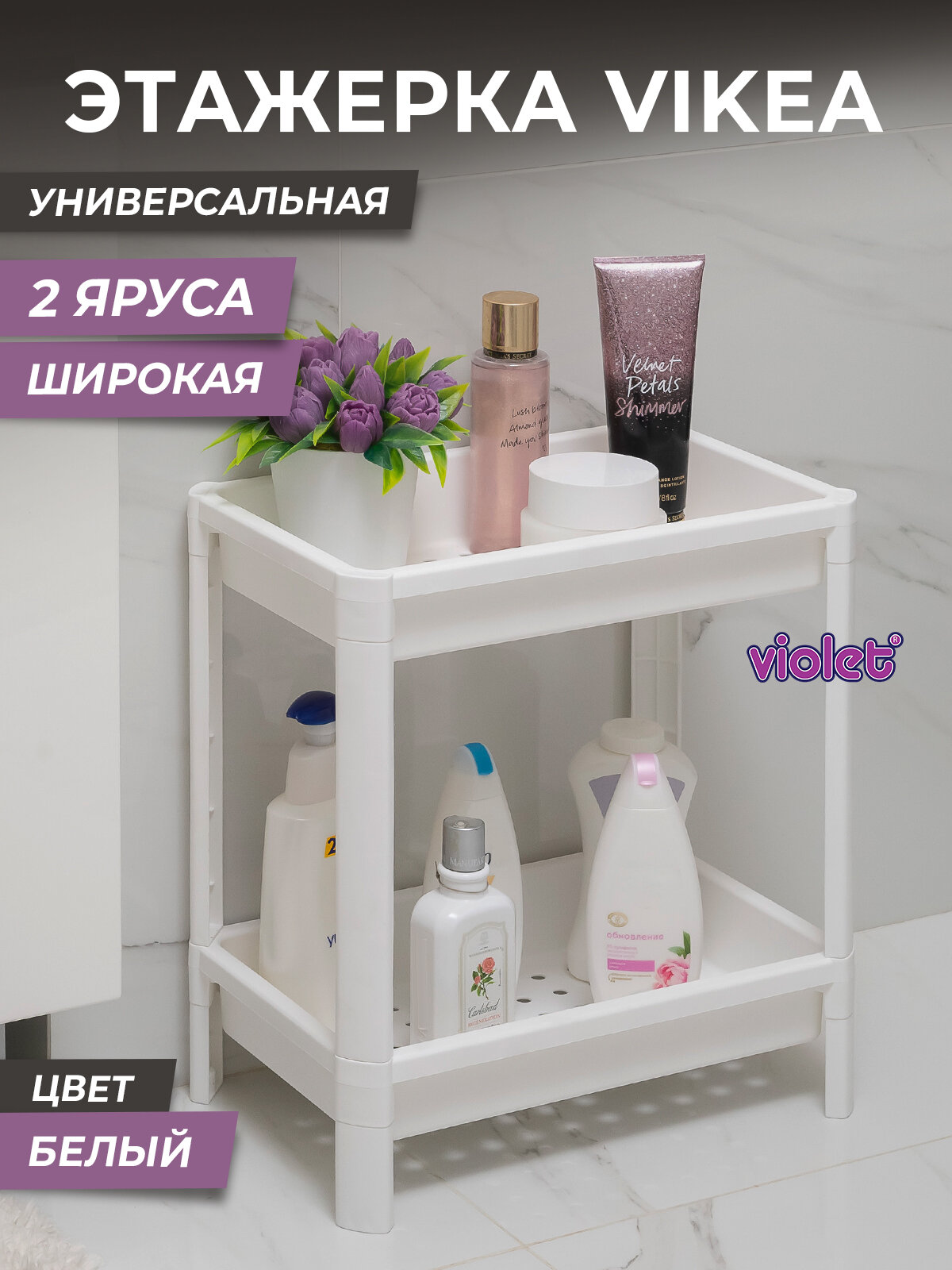 Этажерка Vikea 2-Х Ярусная Широкая Белая(1) Виолет 781206 .