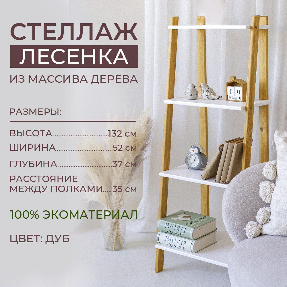 Стеллаж из дерева лесенка 4 полки белый дуб интересное: