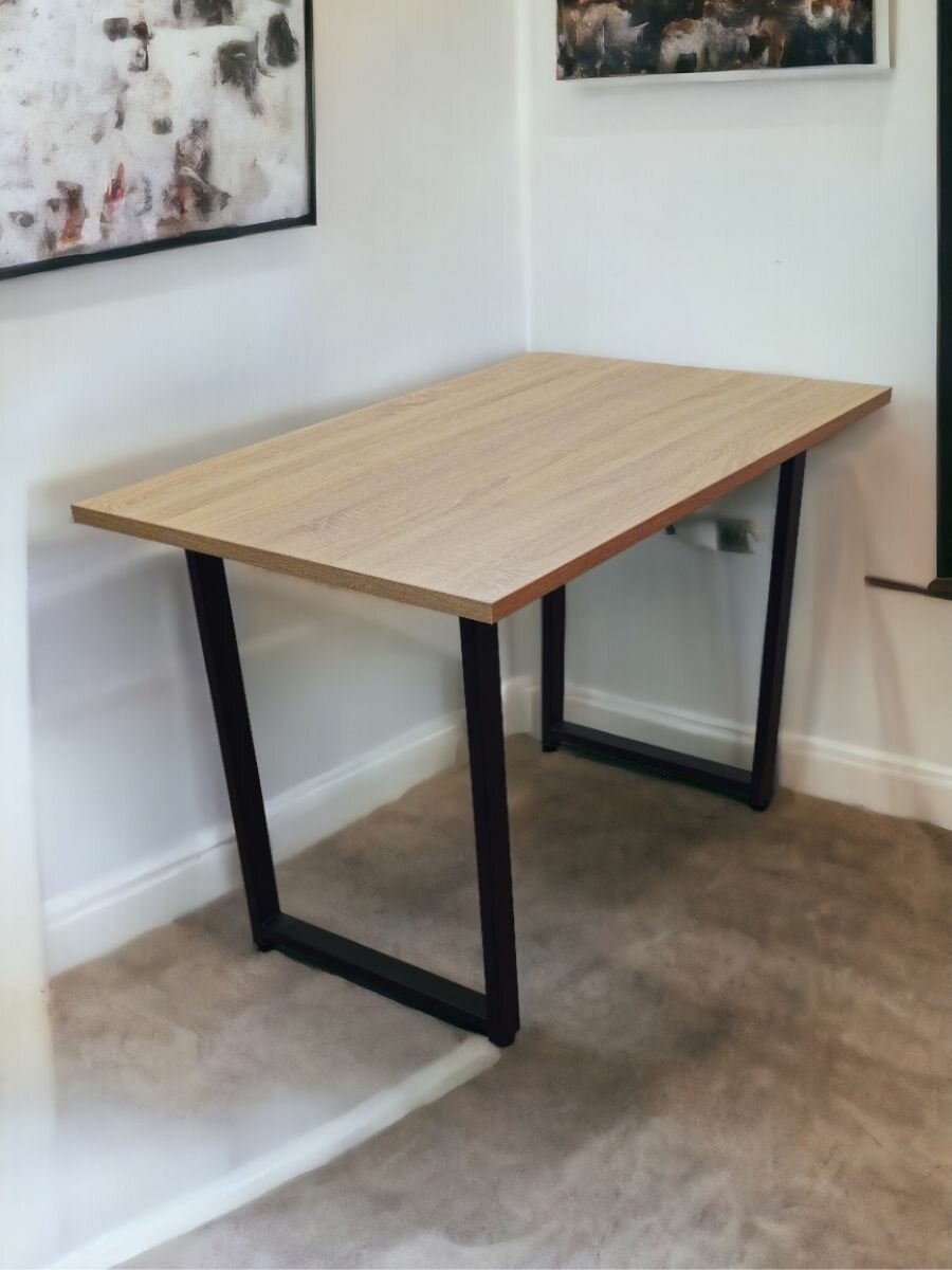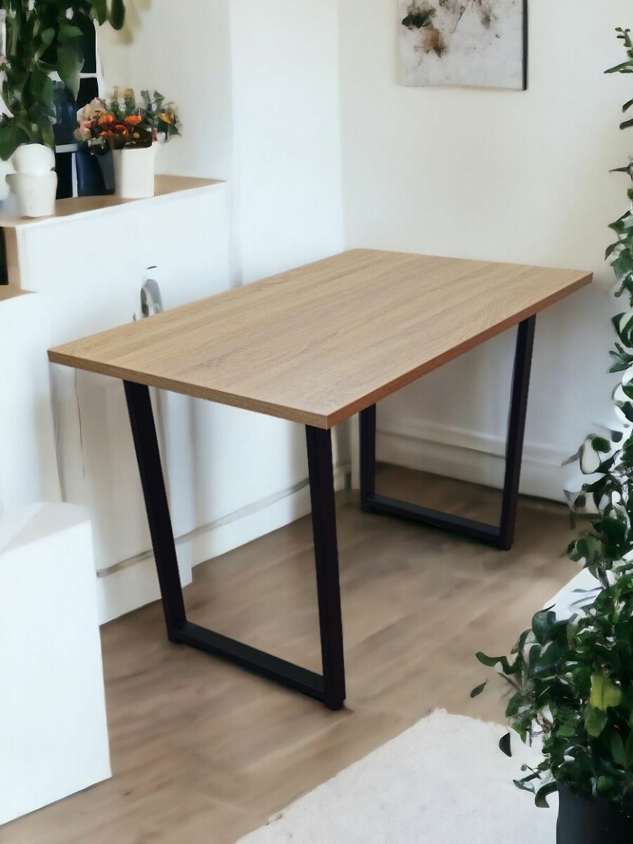 Стол кухонный Loft со столешницей из массива сосны 40 мм без шлифовки и покрытия, с черными металлическими Z-образными ножками, 140х80х75 см