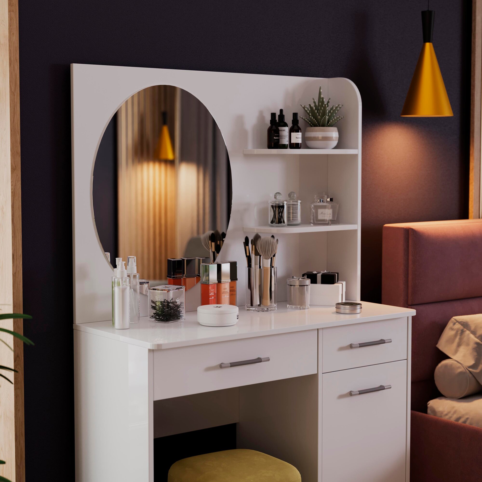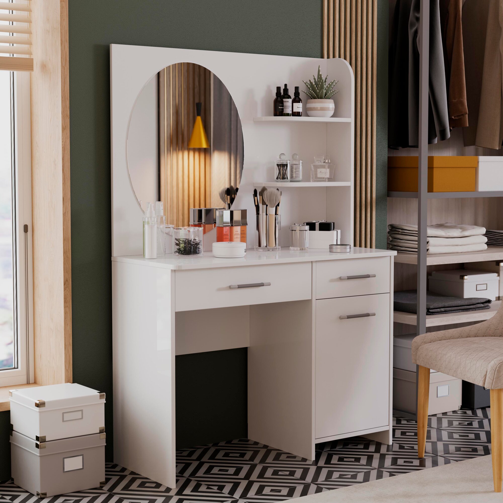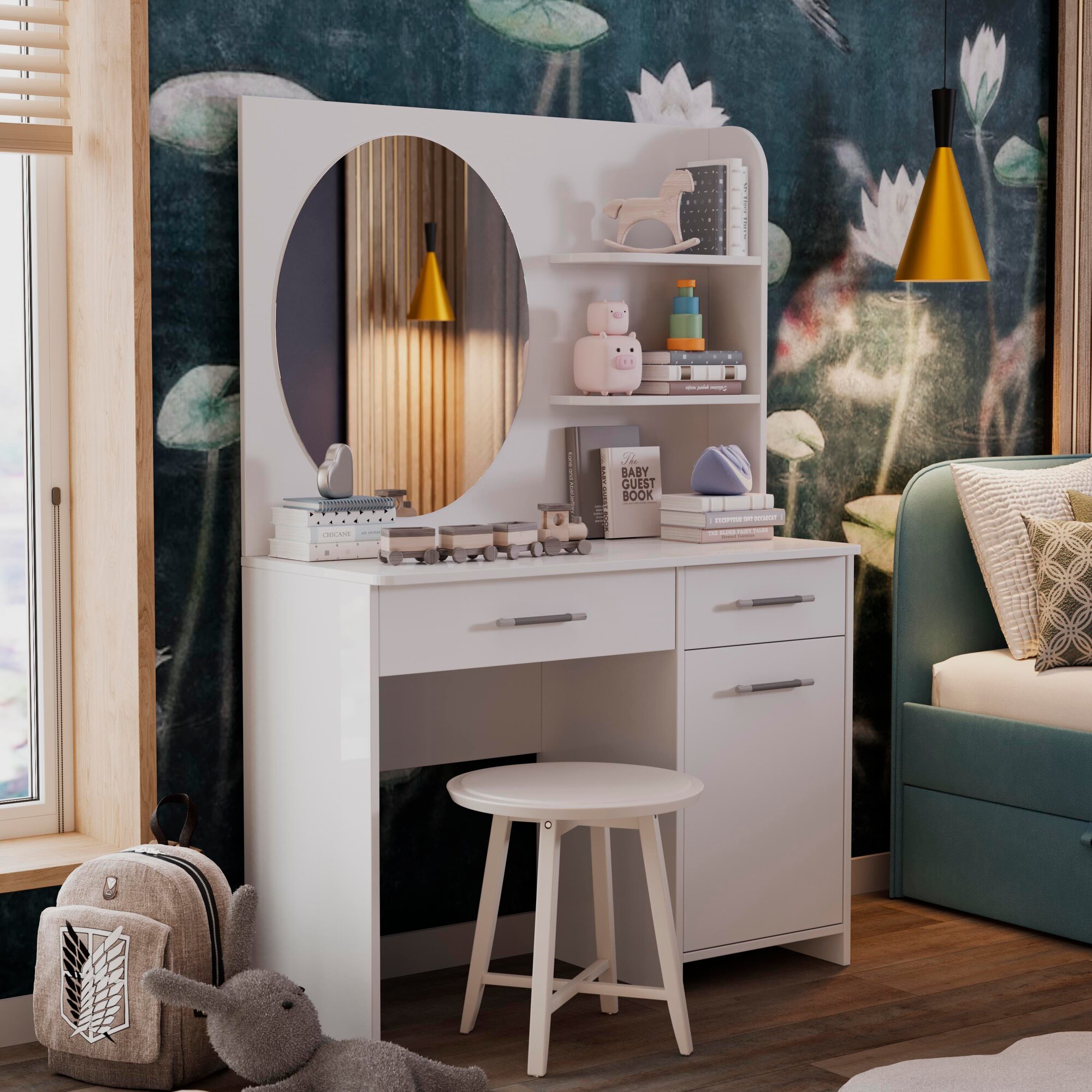 Купить Туалетный столик, трюмо с зеркалом и ящиками белый, ТриЯ, Эвита