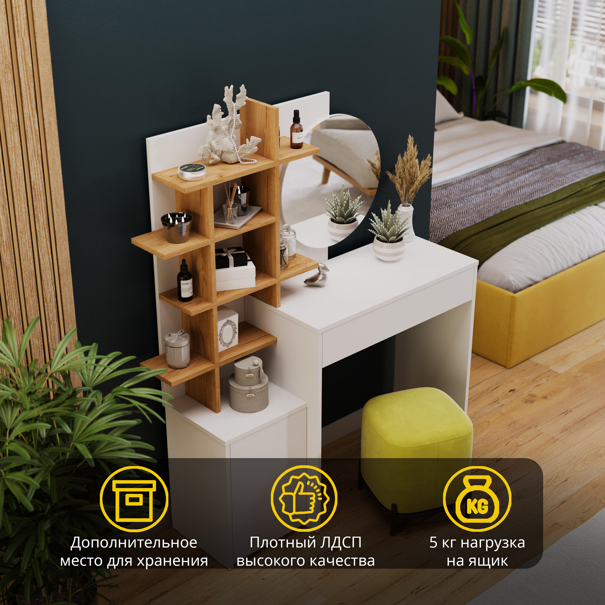 Туалетный столик, трюмо, Белый/Дуб крафт золотой, Голден Тип 1 интересное: