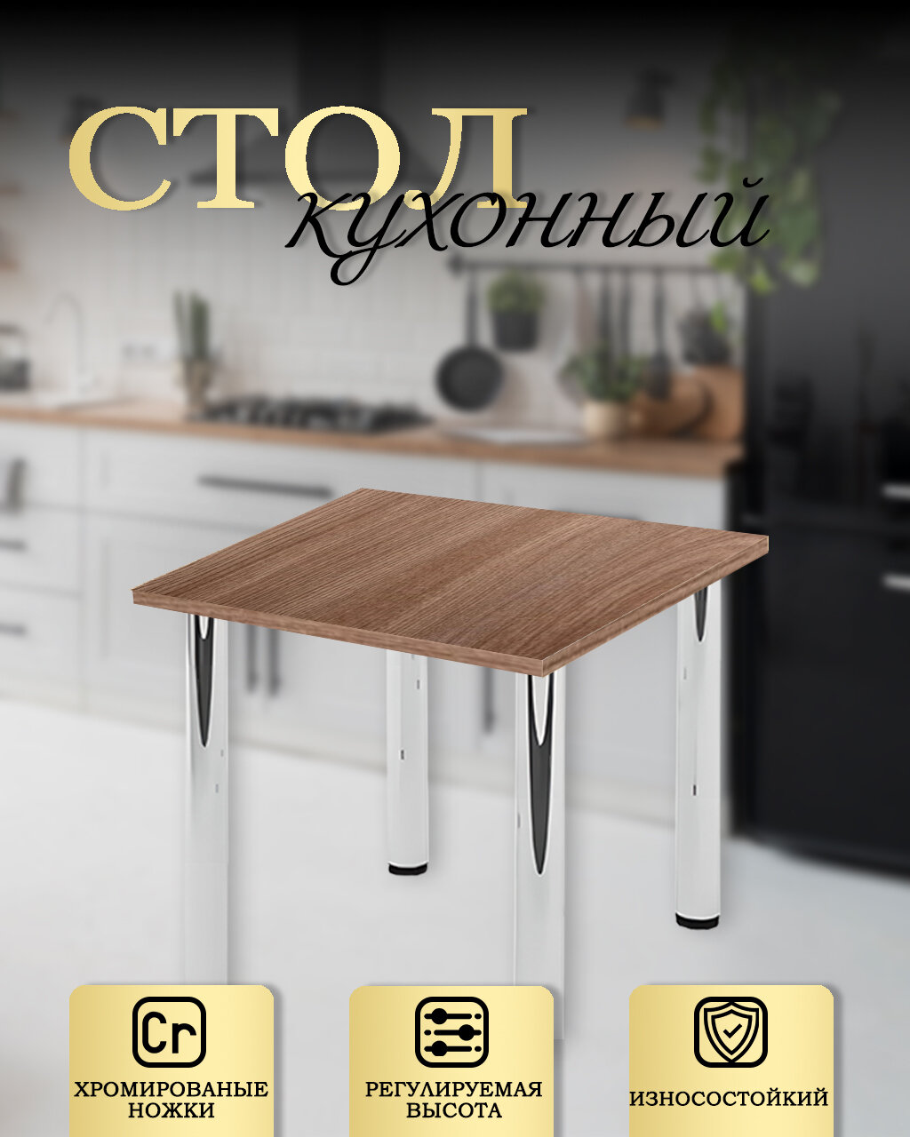 Стол кухонный OMEGAMEBEL 70, квадратный, классический стиль, ЛДСП, 4 ножки, 70х60 Ясень