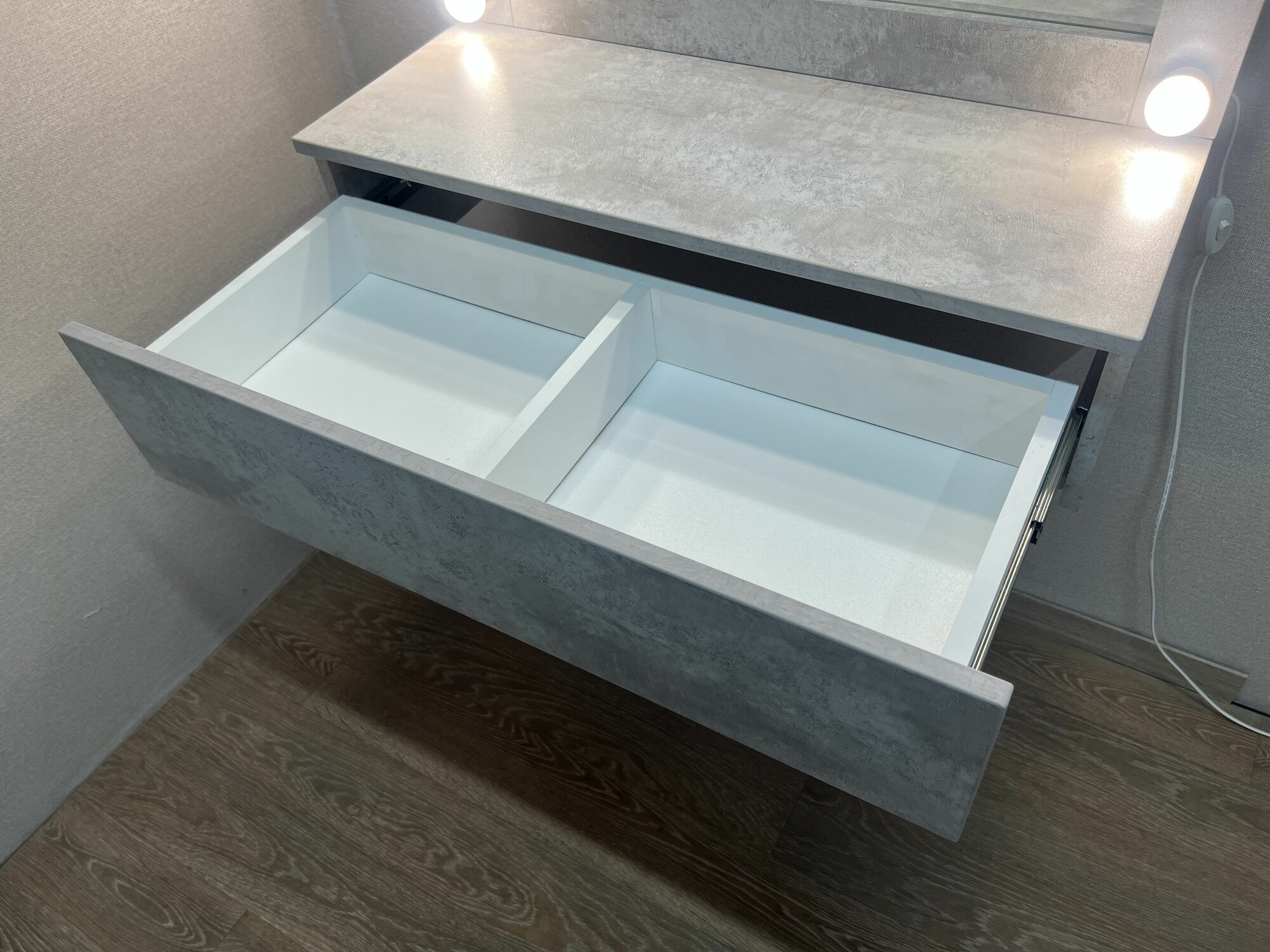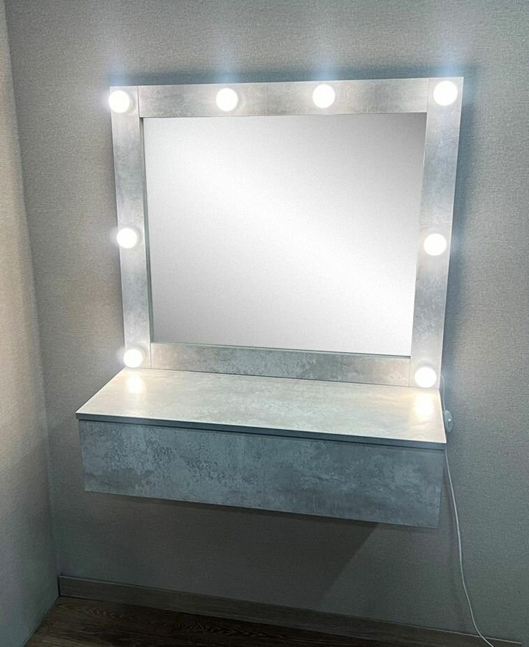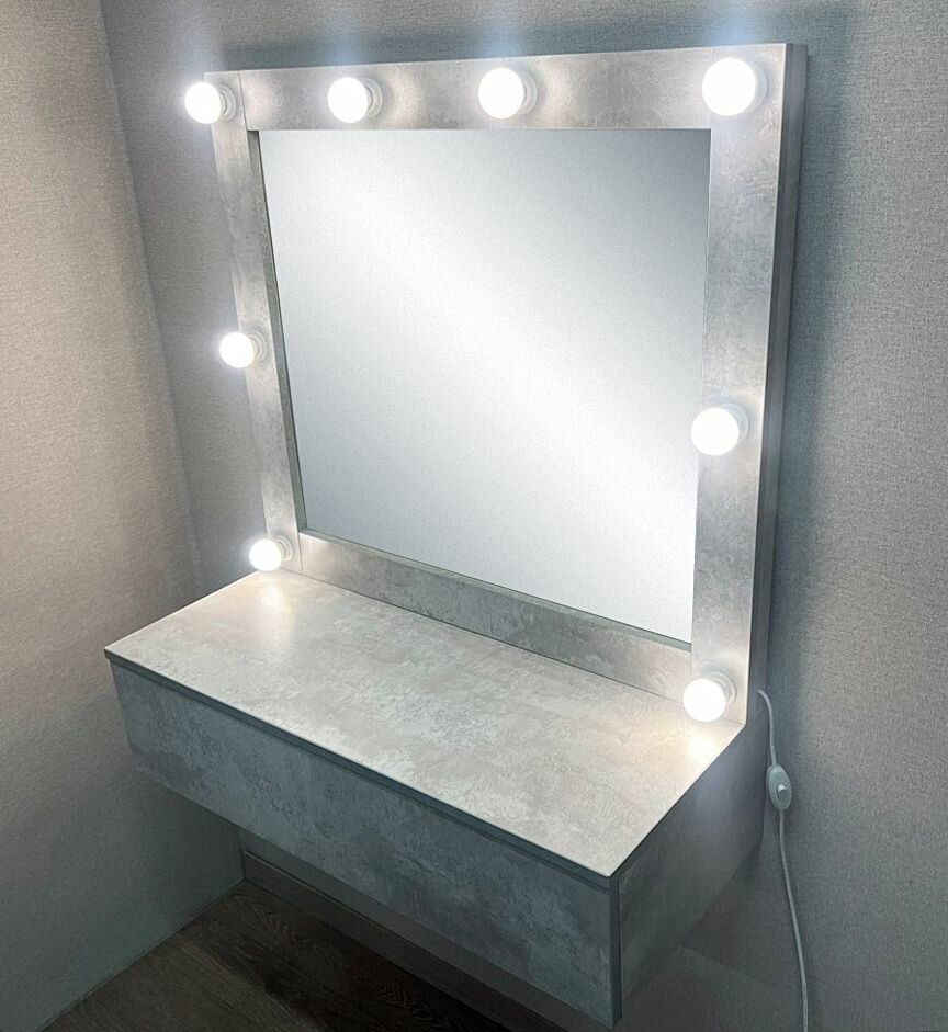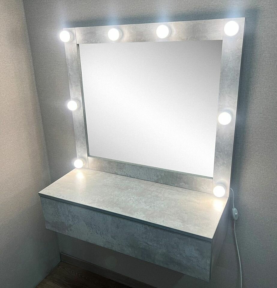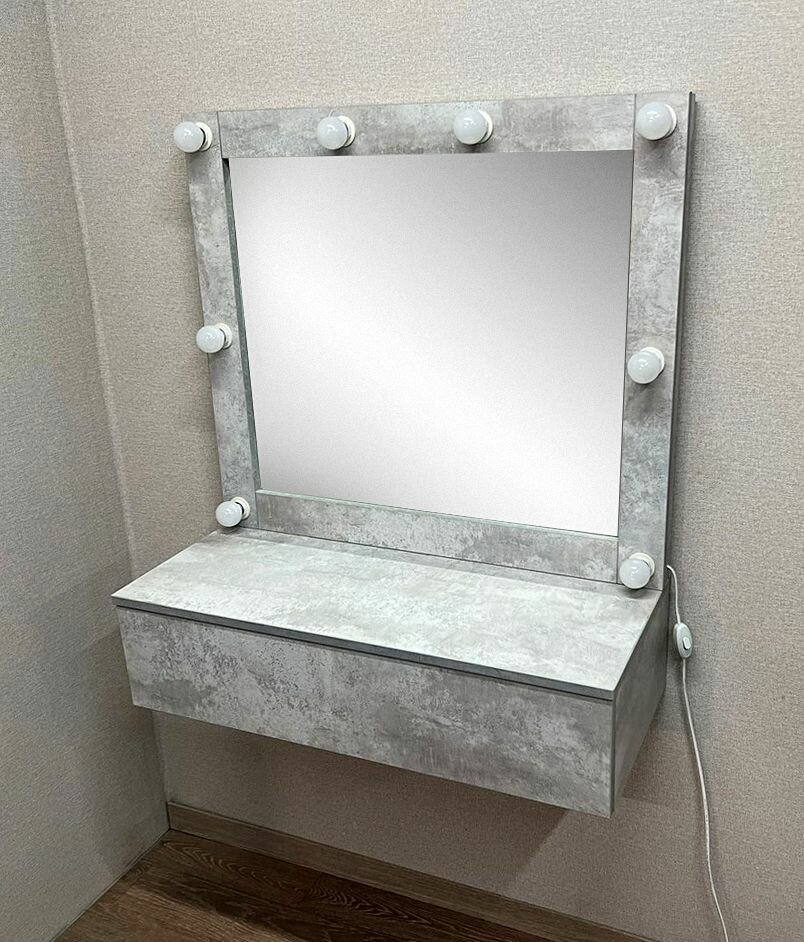 СохранитьТуалетный столик, Гримерное зеркало с подсветкой и консолью 80х90х35, цвет Бетон светлый интересное: