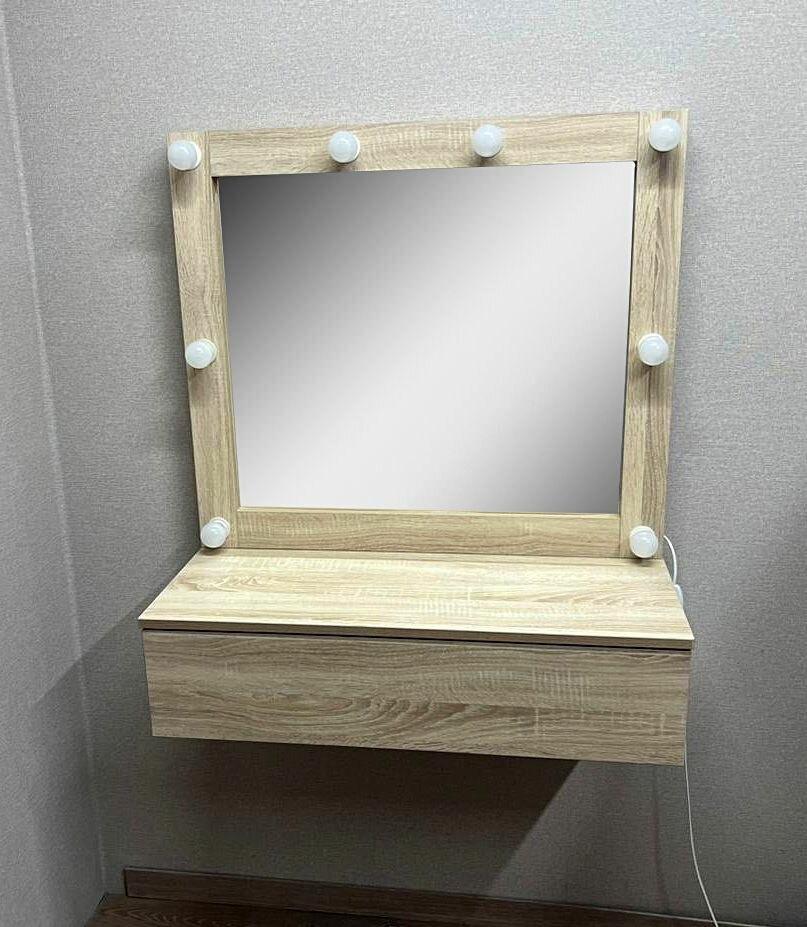 СохранитьТуалетный столик, Гримерное зеркало с подсветкой и консолью 80х90х35, цвет Дуб Сонома светлый интересное: