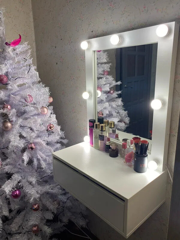 Туалетный столик, Гримерное зеркало с подсветкой и консолью 60х90х35, цвет Белый интересное: