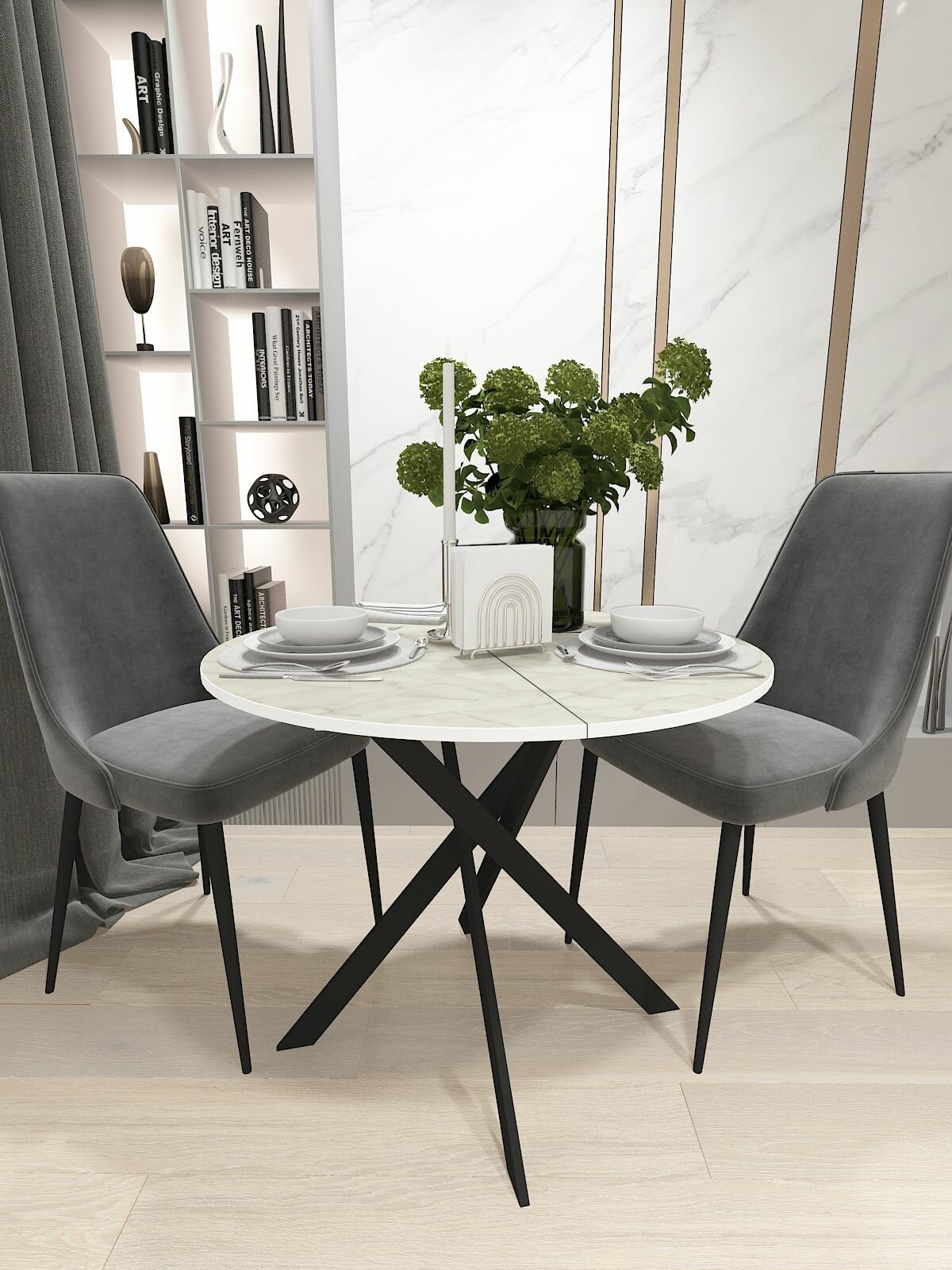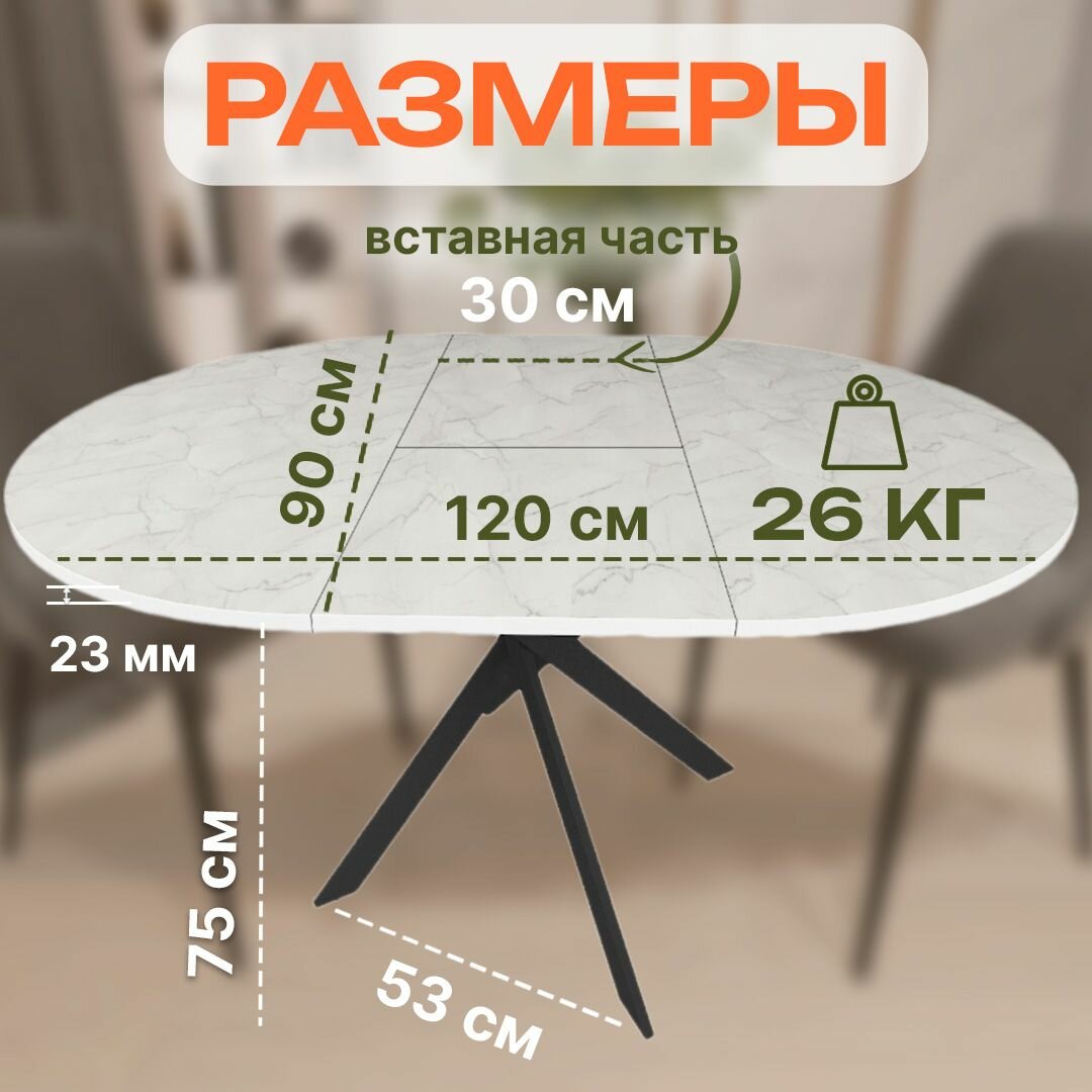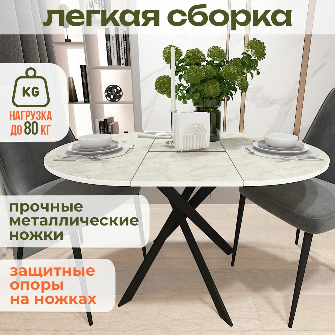 Стол круглый раздвижной Мрамор Белый, белый 90(120)*90*75см