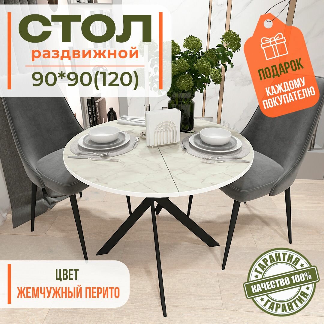 СохранитьСтол круглый раздвижной Жемчужный Перито 90(120)*90*75см интересное: