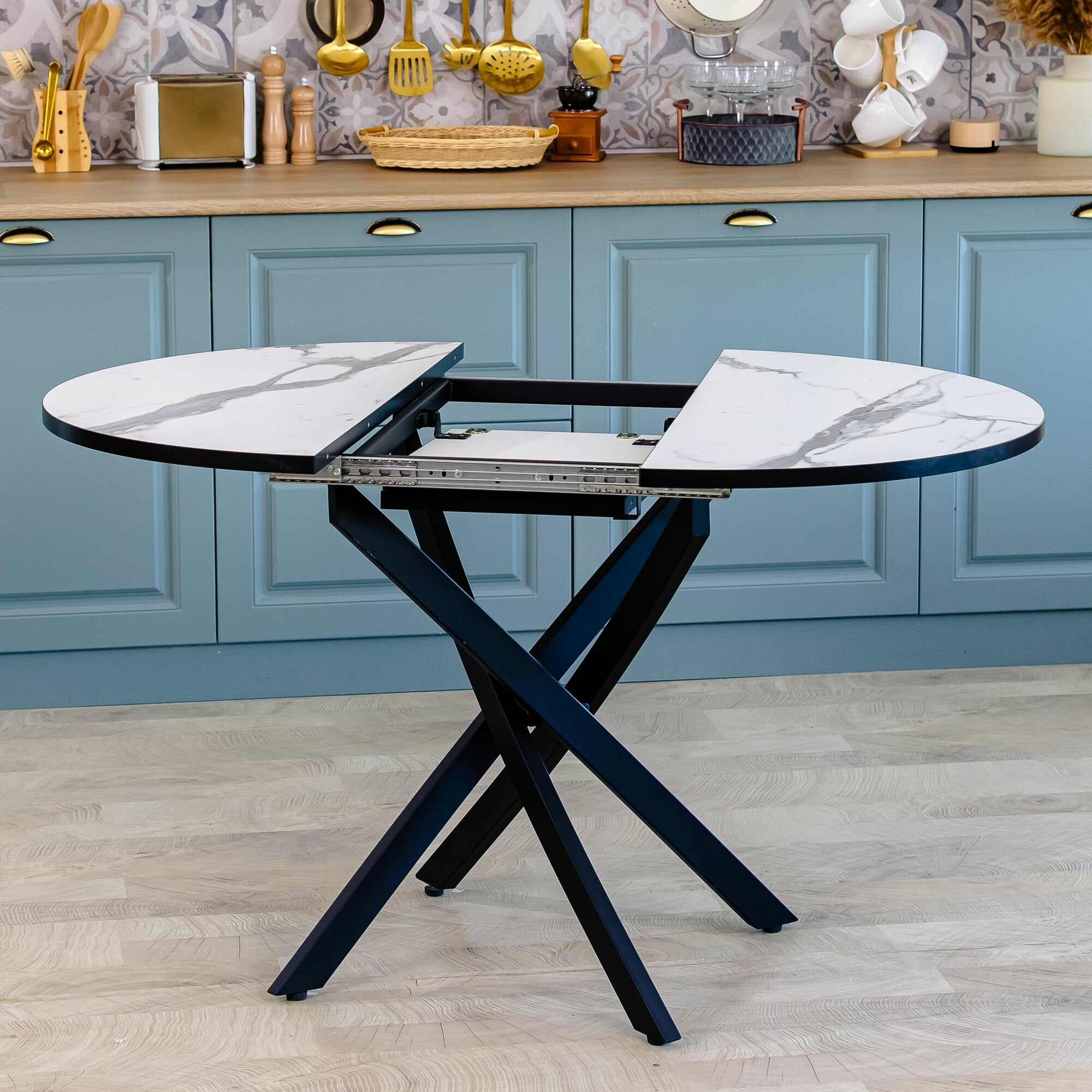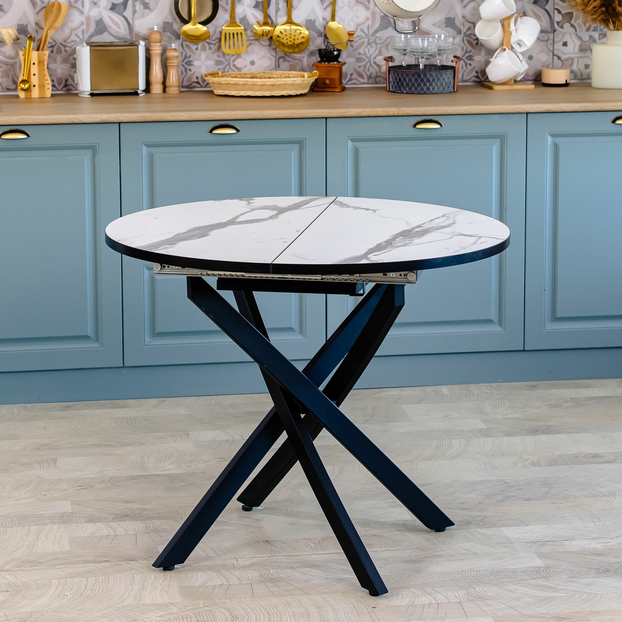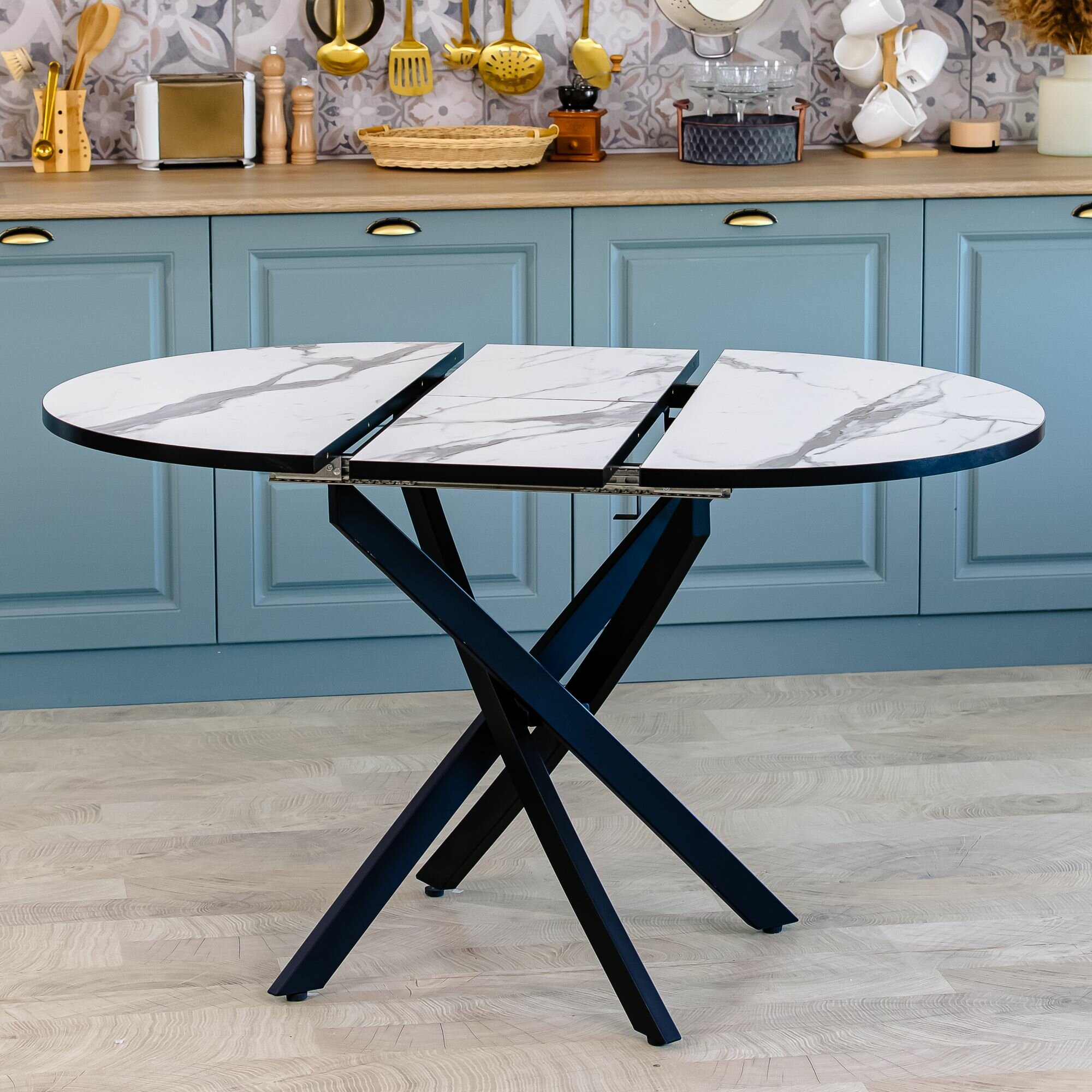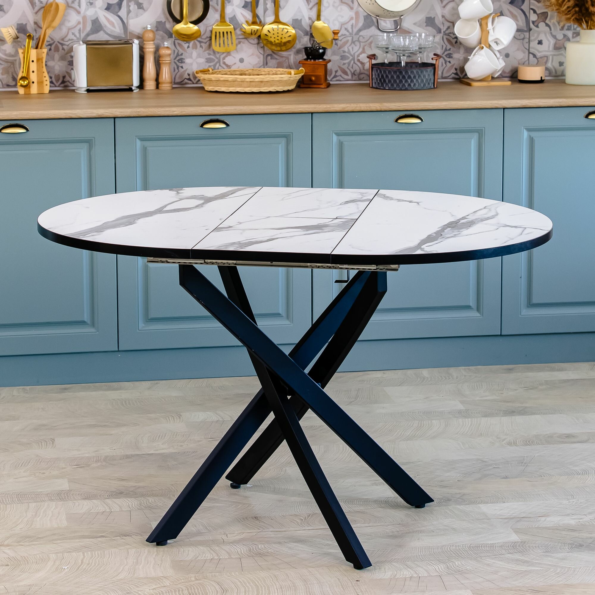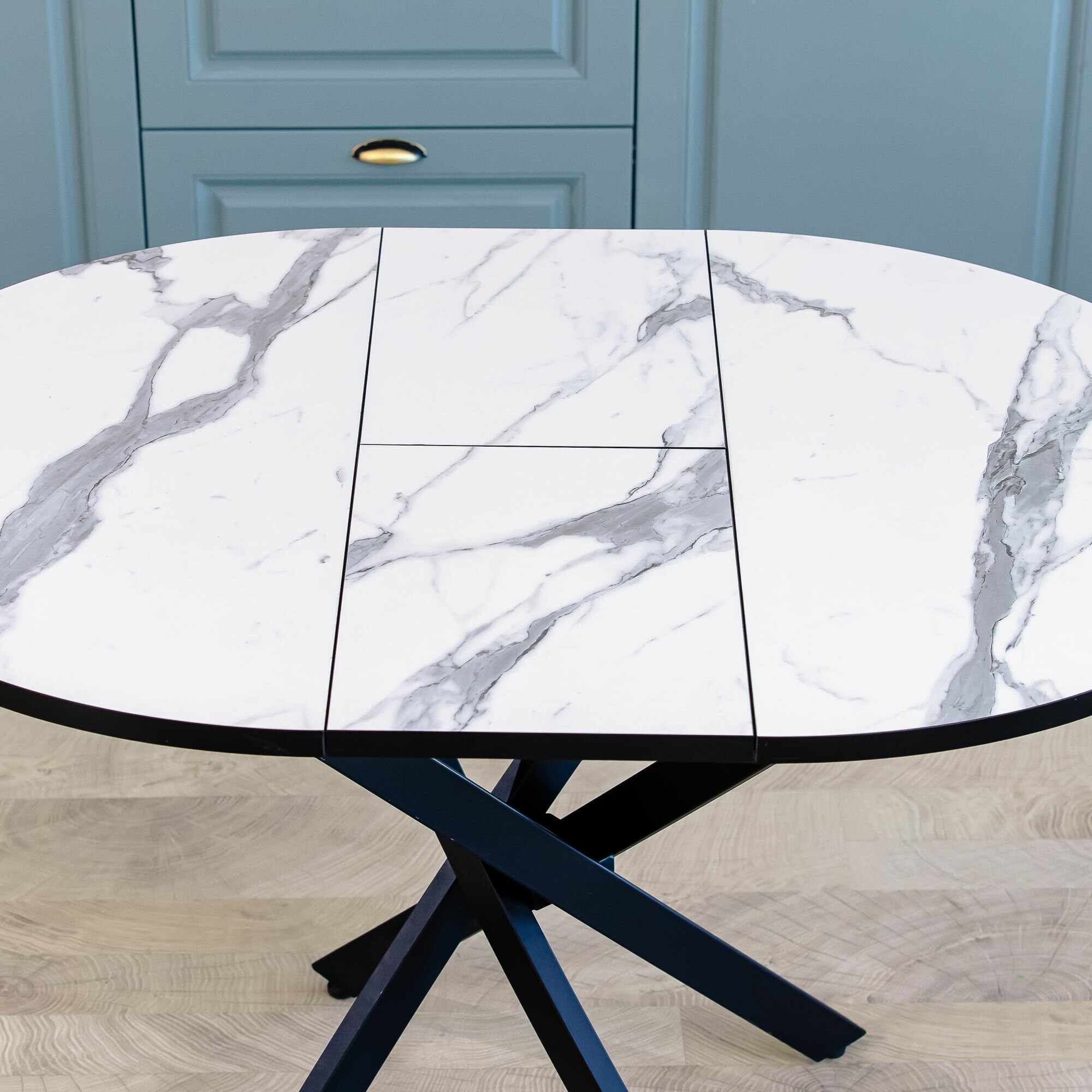 Стол круглый раздвижной Мрамор Белый, белый 90(120)*90*75см