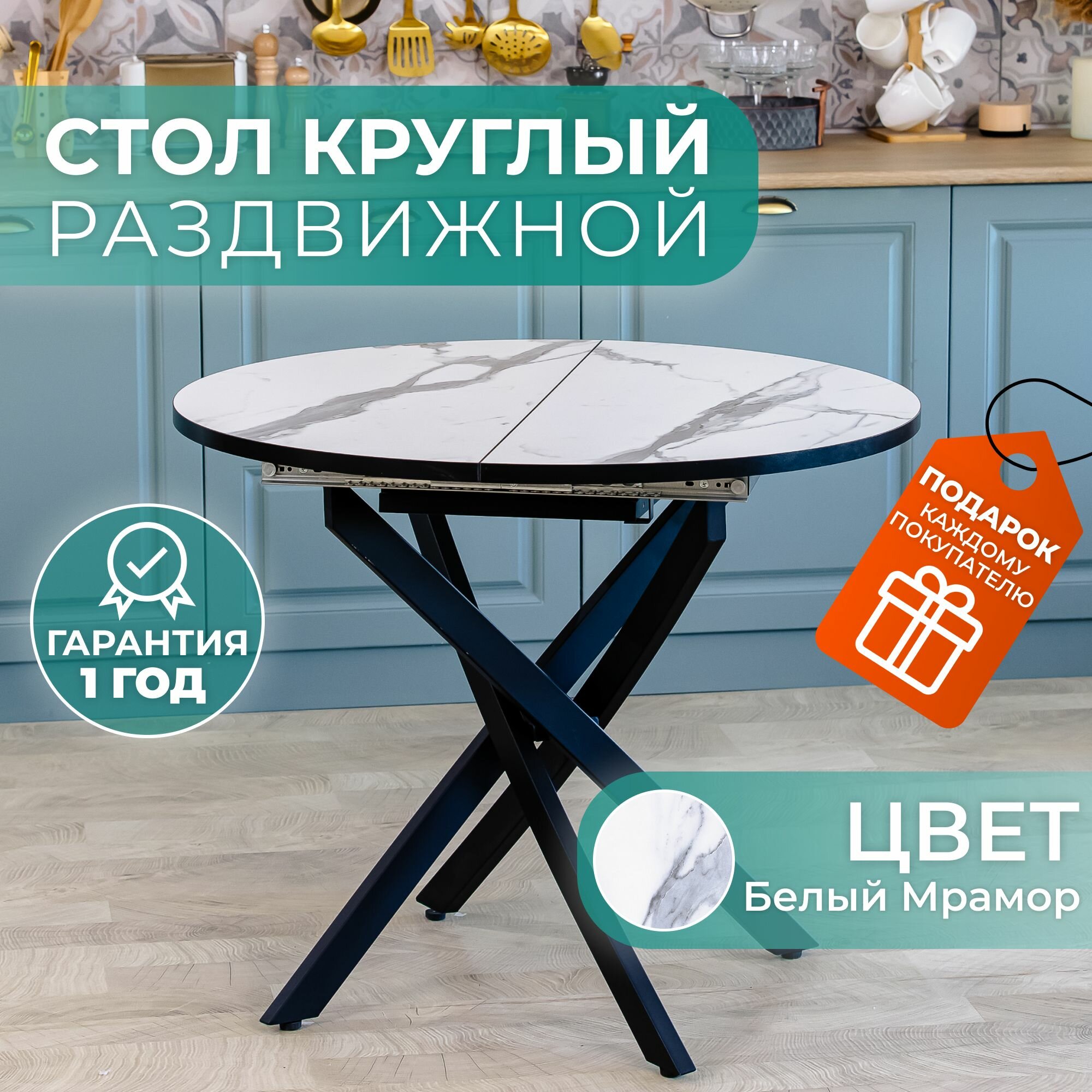 Купить Стол круглый раздвижной Мрамор Белый 90(120)*90*75см