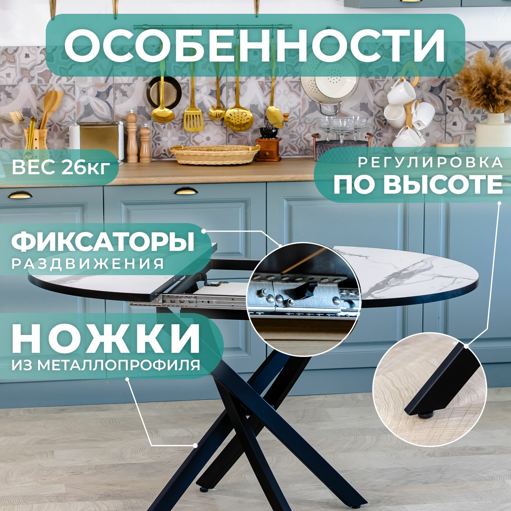СохранитьСтол круглый раздвижной Мрамор Белый 90(120)*90*75см интересное: