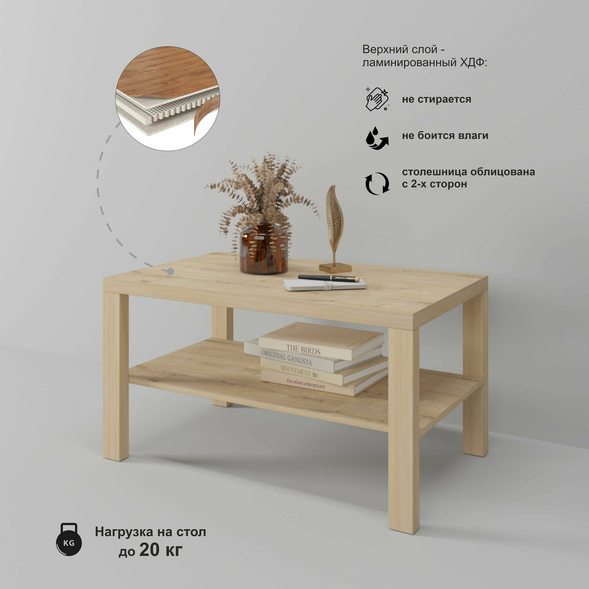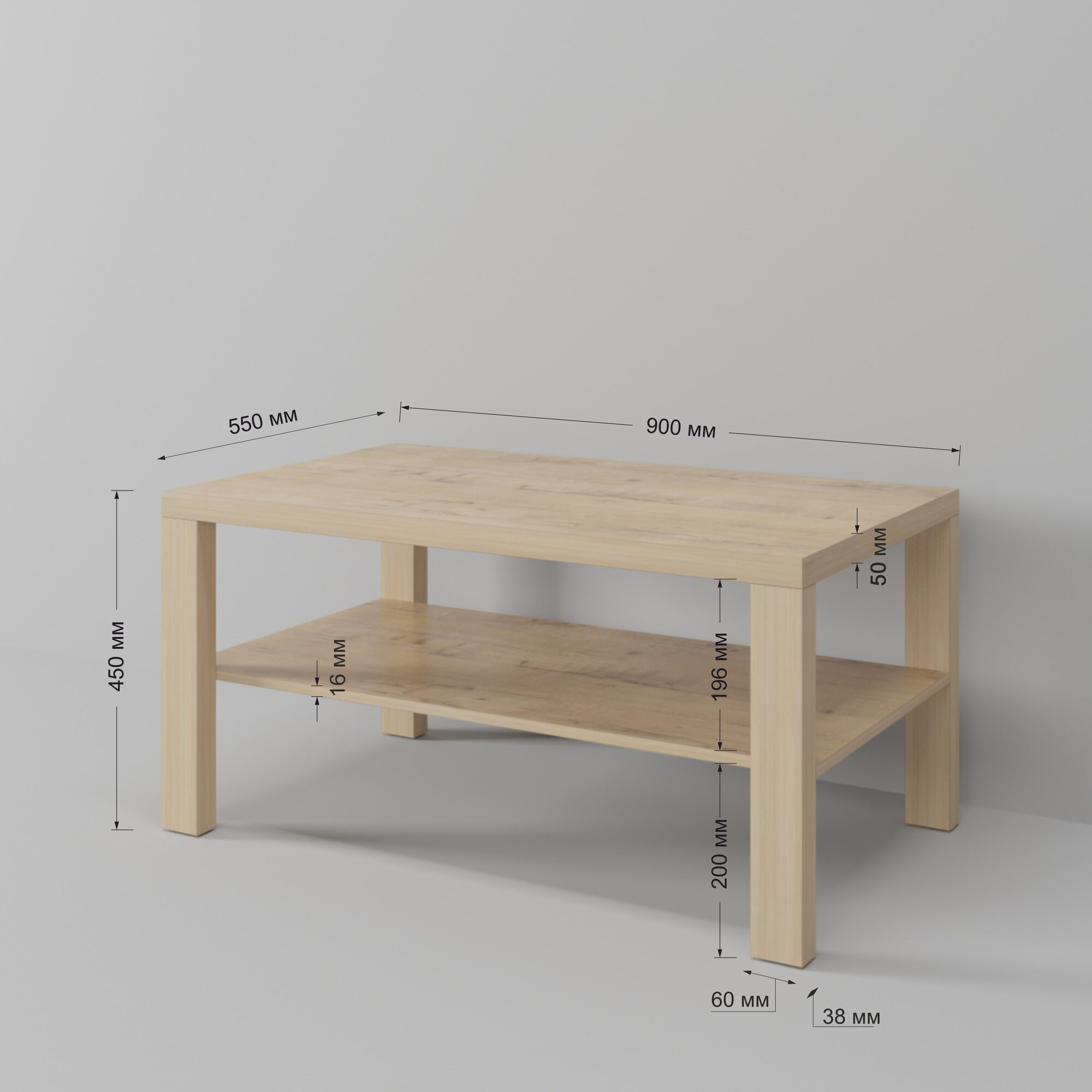 Журнальный столик RIDDLE LUCKY 900 х 550 х 450 с полкой придиванный, стол приставной, кофейный