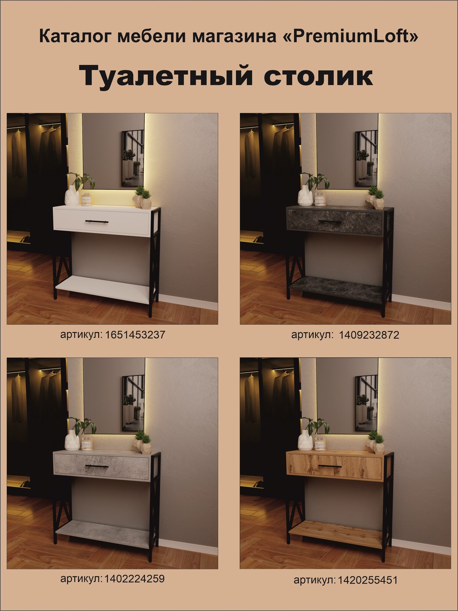 Ниже Вы можете прочитать отзывы на Туалетный столик лофт, консоль, ознакомится с подробными характеристиками, посмотреть интересные обзоры и фотографии на Туалетный столик лофт, консоль.