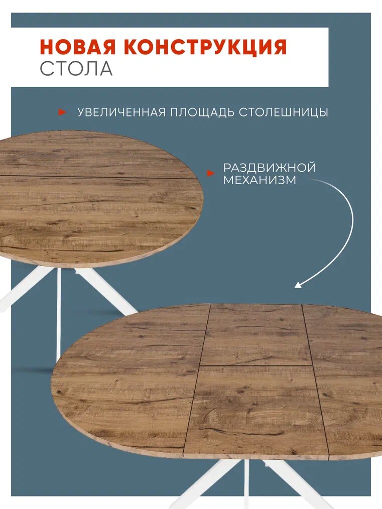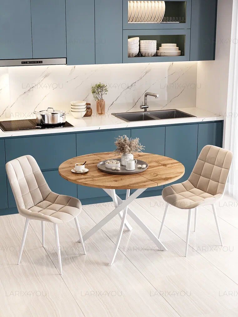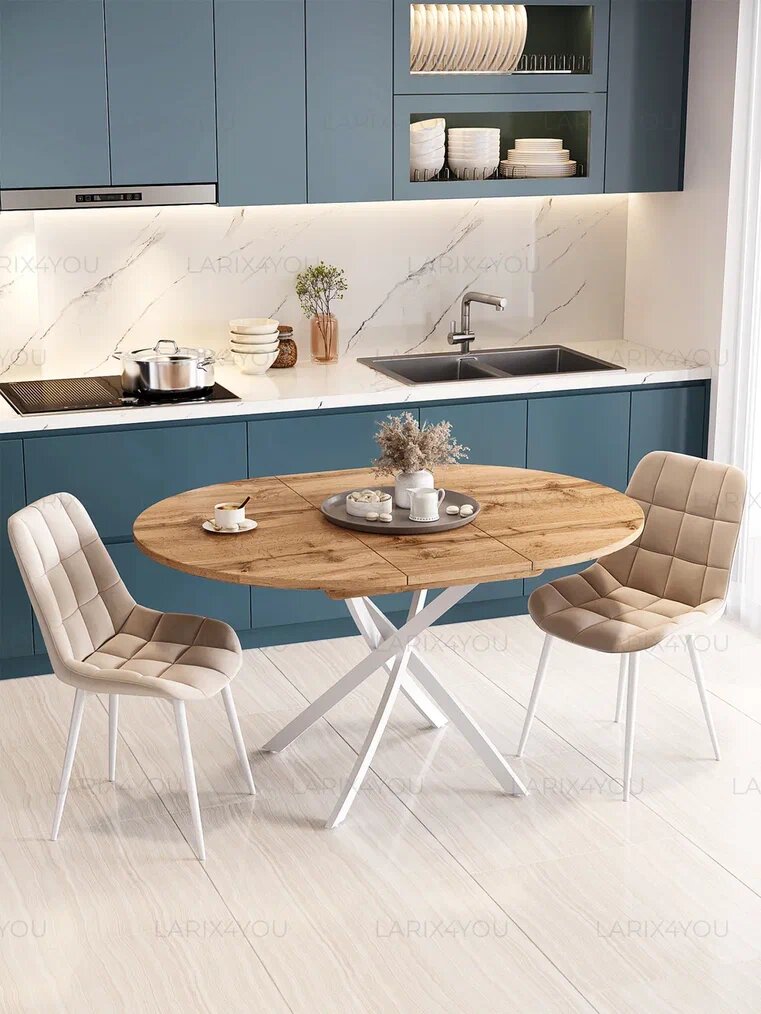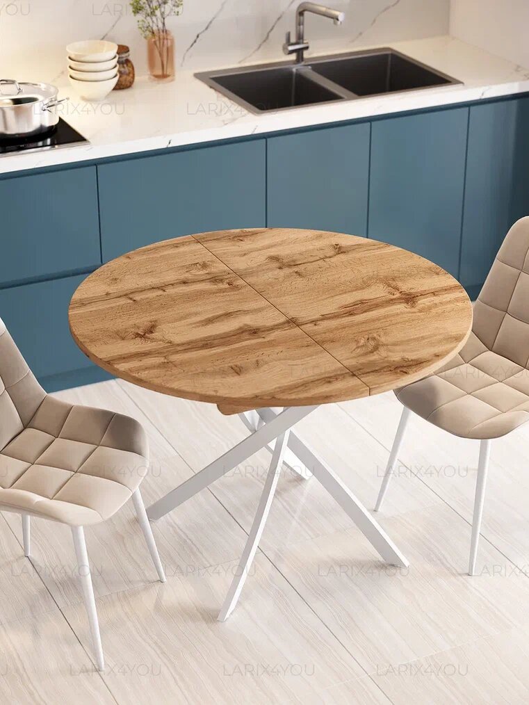 Стол кухонный раздвижной Larix4You, 90х90 см, ЛДСП, металл, 8 персон, Дуб Вотан