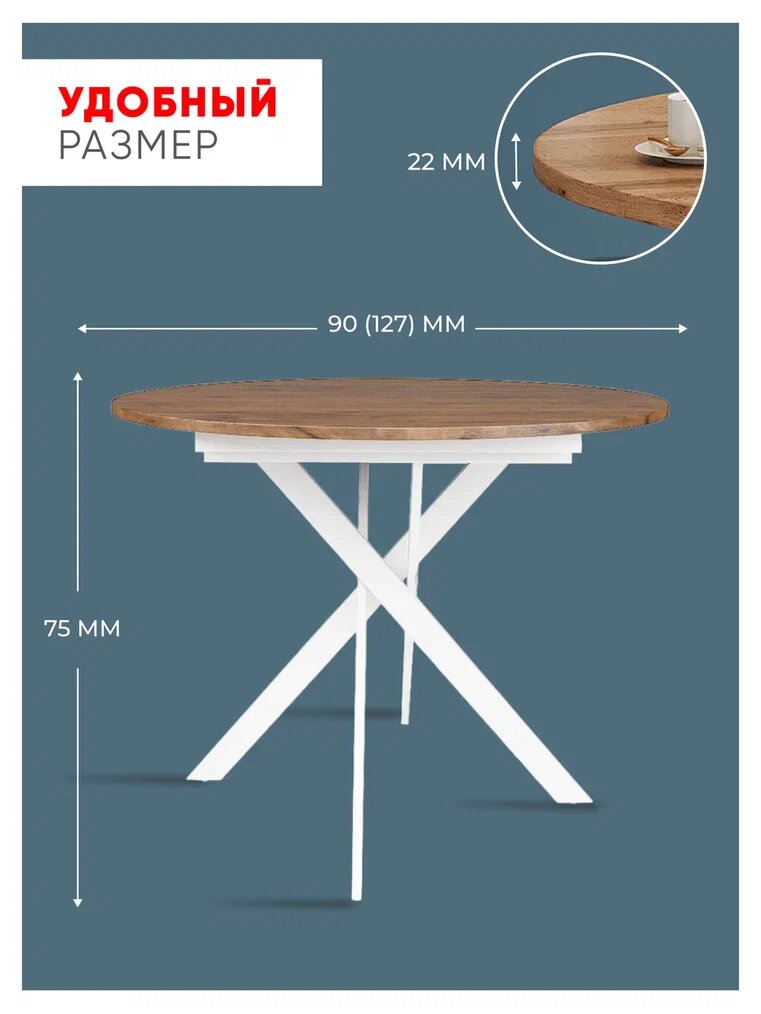 Стол кухонный круглый раздвижной "Короче! Мебель", Дуб Вотан, 90х75х90/127 см