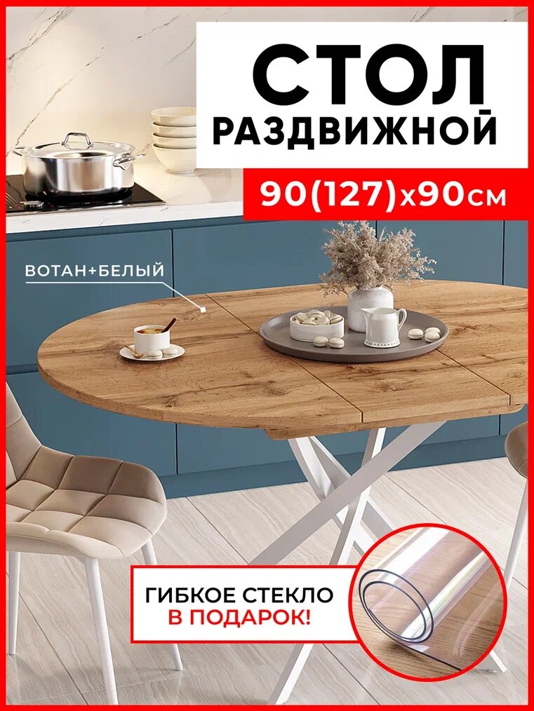 Стол кухонный раздвижной круглый Бетао, 90х90см