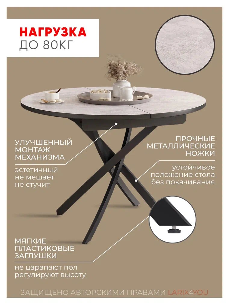Стол кухонный раздвижной круглый, элегантный Фаерстоун , 90х90 см