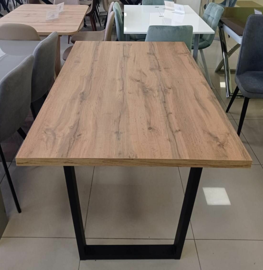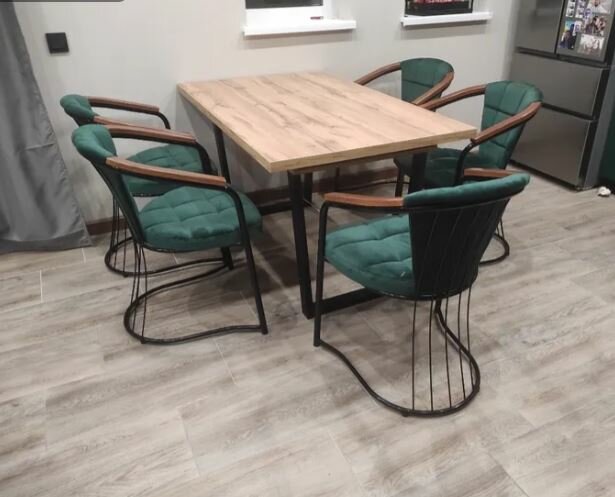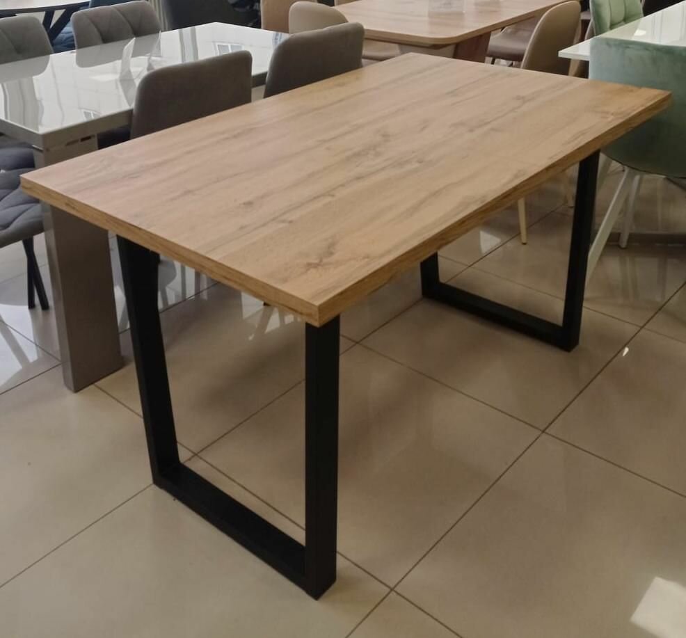 Стол кухонный Loft со столешницей из массива сосны 40 мм без шлифовки и покрытия, с черными металлическими Z-образными ножками, 140х80х75 см