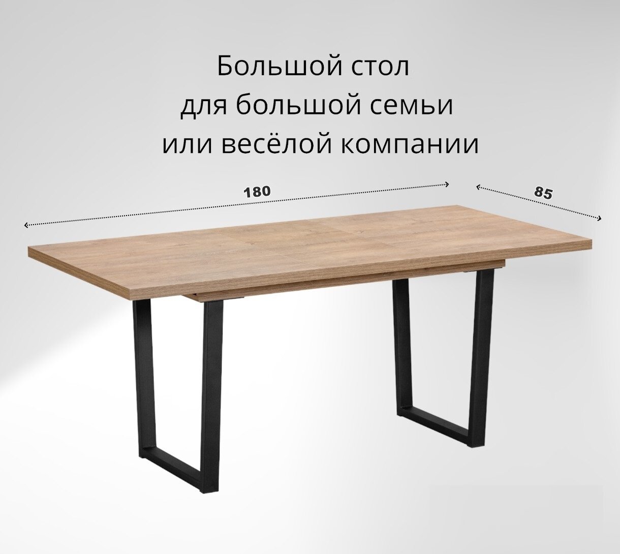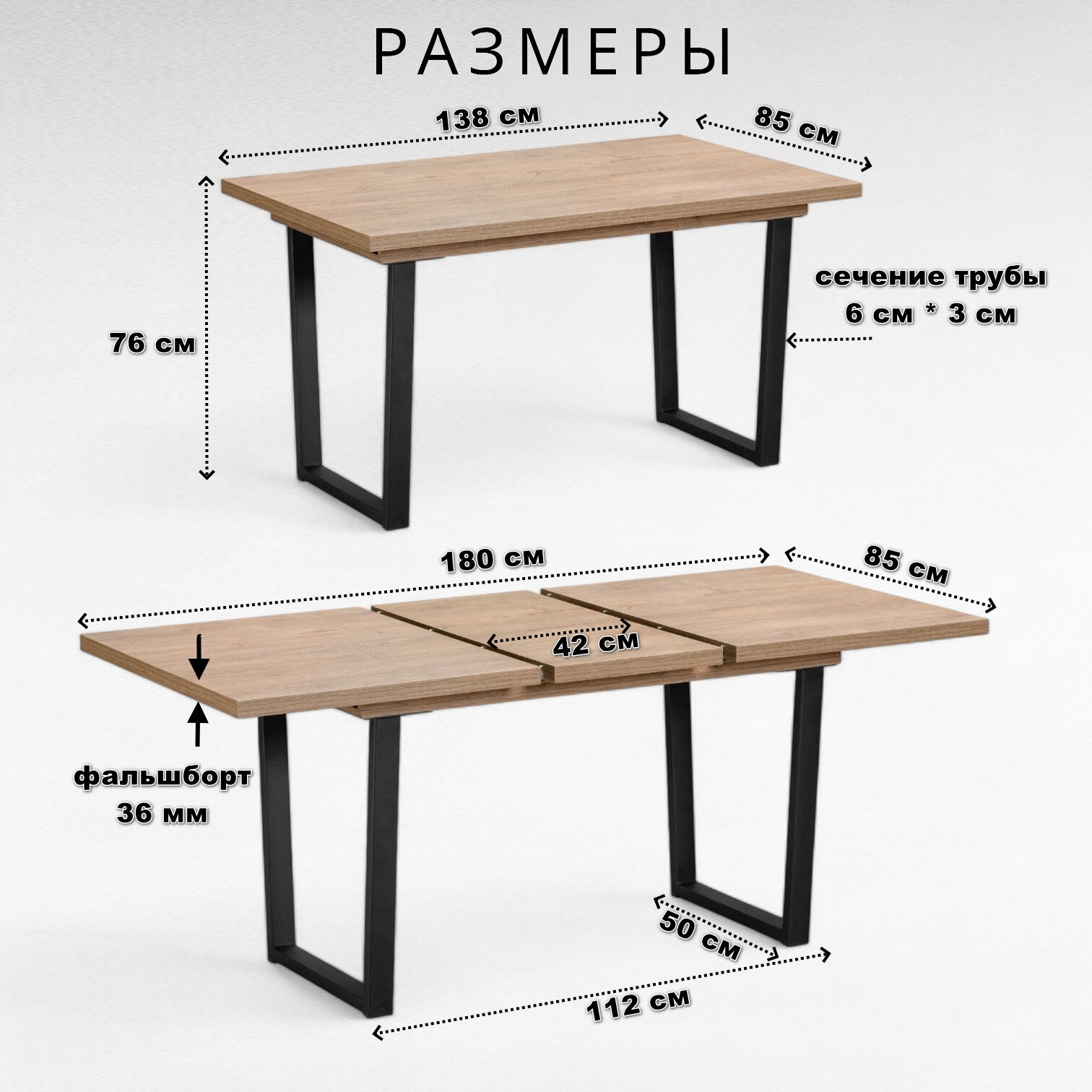 Стол кухонный Терминал KANSAS 138/180х85, раскладной, ЛДСП, Дуб канзас/черный, лофт
