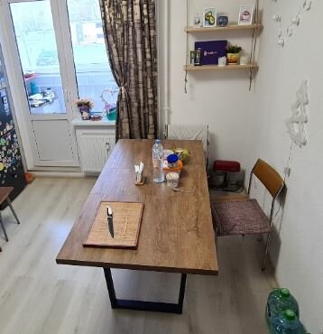 Стол кухонный Loft со столешницей из массива сосны 40 мм без шлифовки и покрытия, с черными металлическими Z-образными ножками, 140х80х75 см