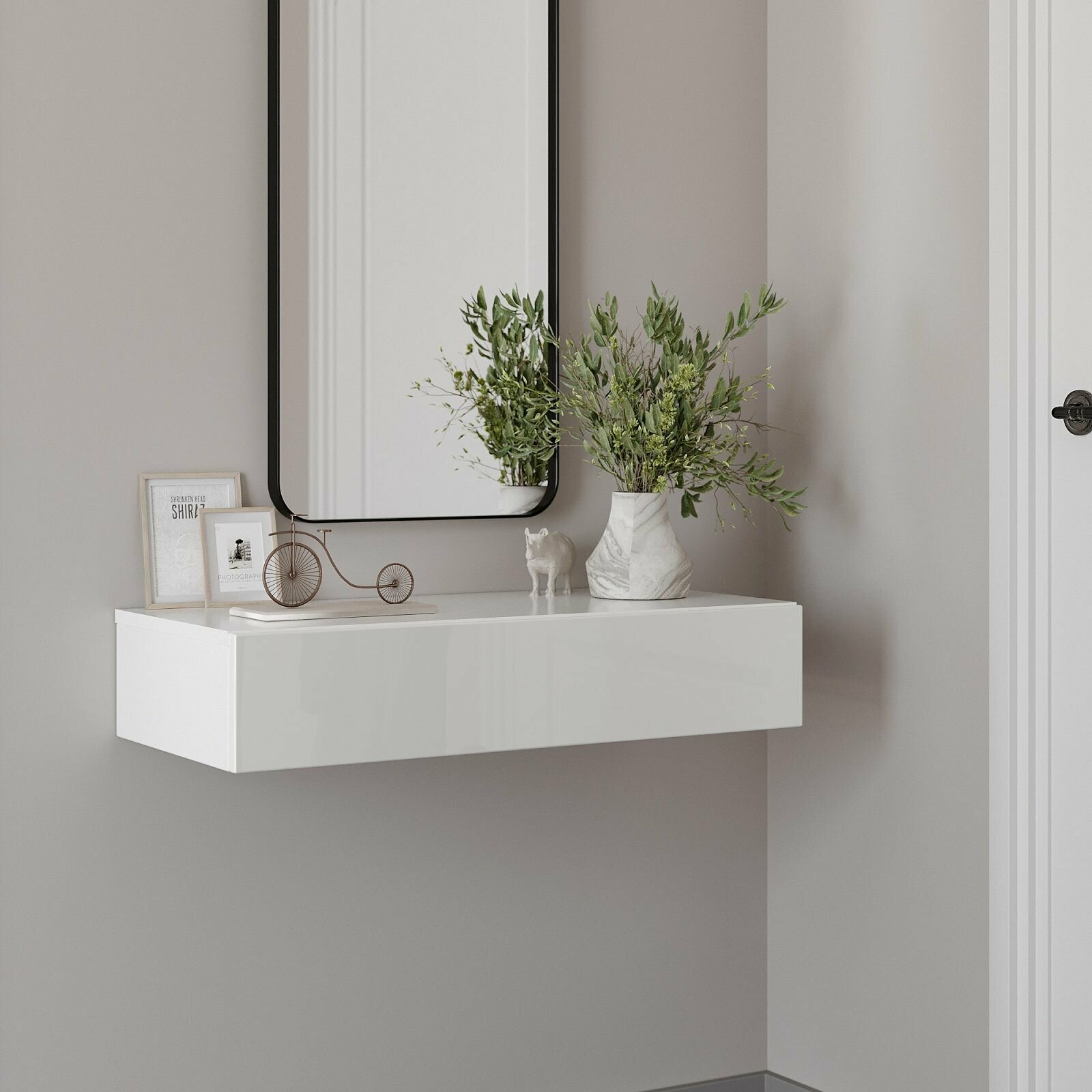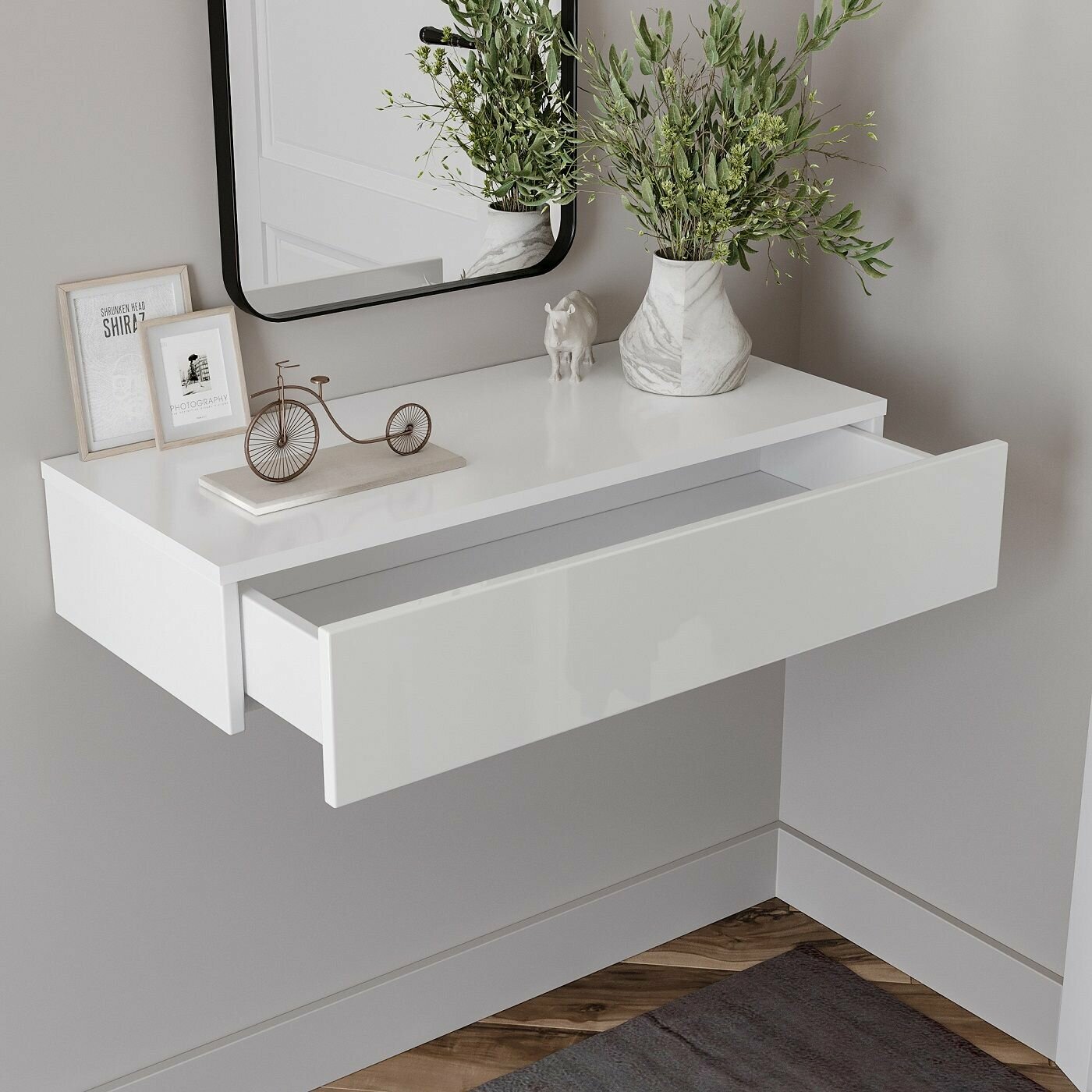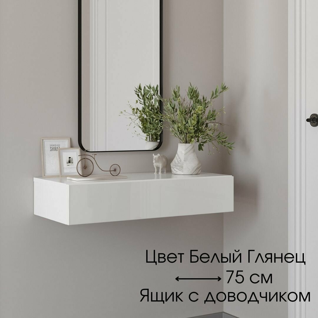 Купить Туалетный столик цвет белый Глянец, ящик с доводчиком, модель Чикаго, 75х35х15 см