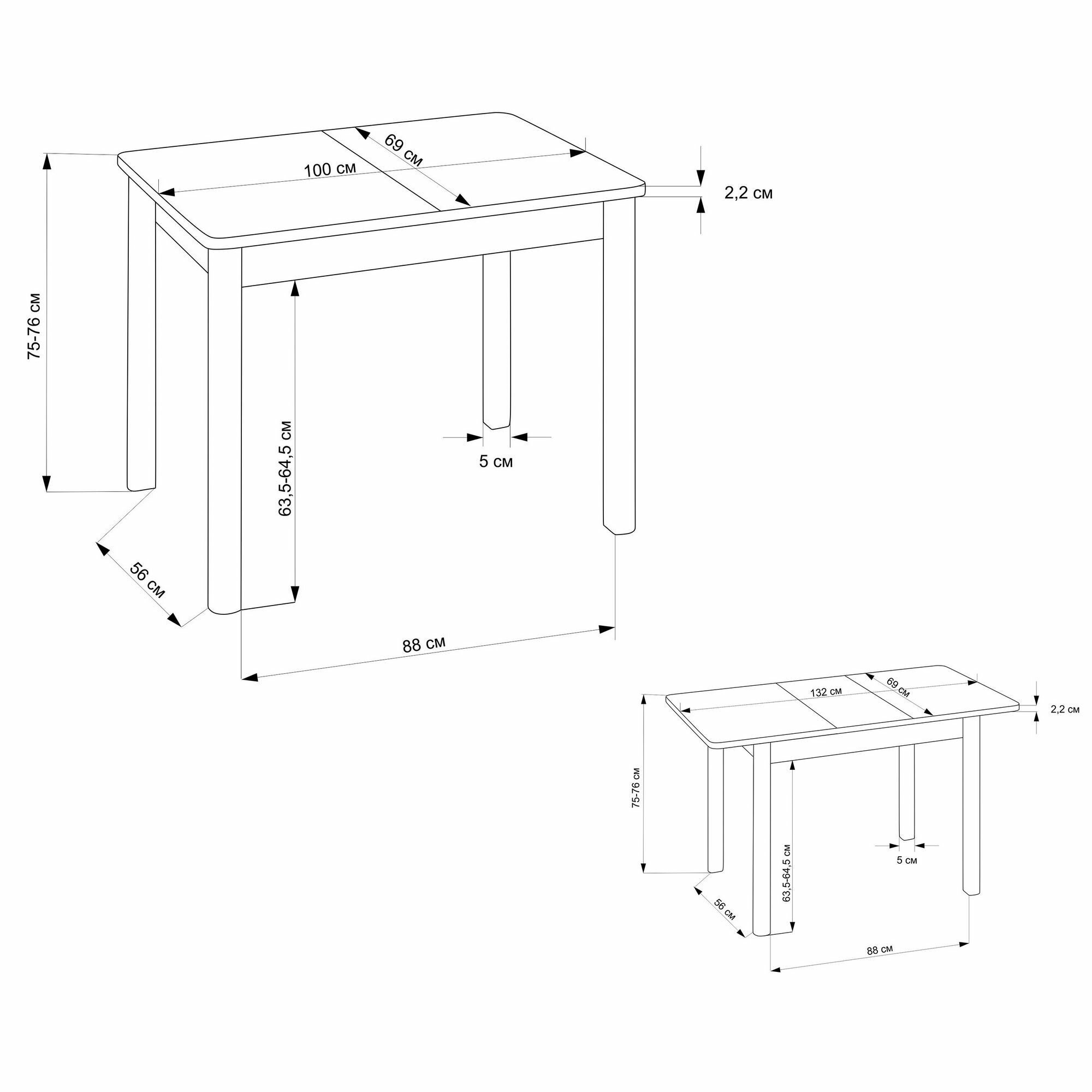 Стол раздвижной гранд-с, 100/132х69, белый матовый, черный