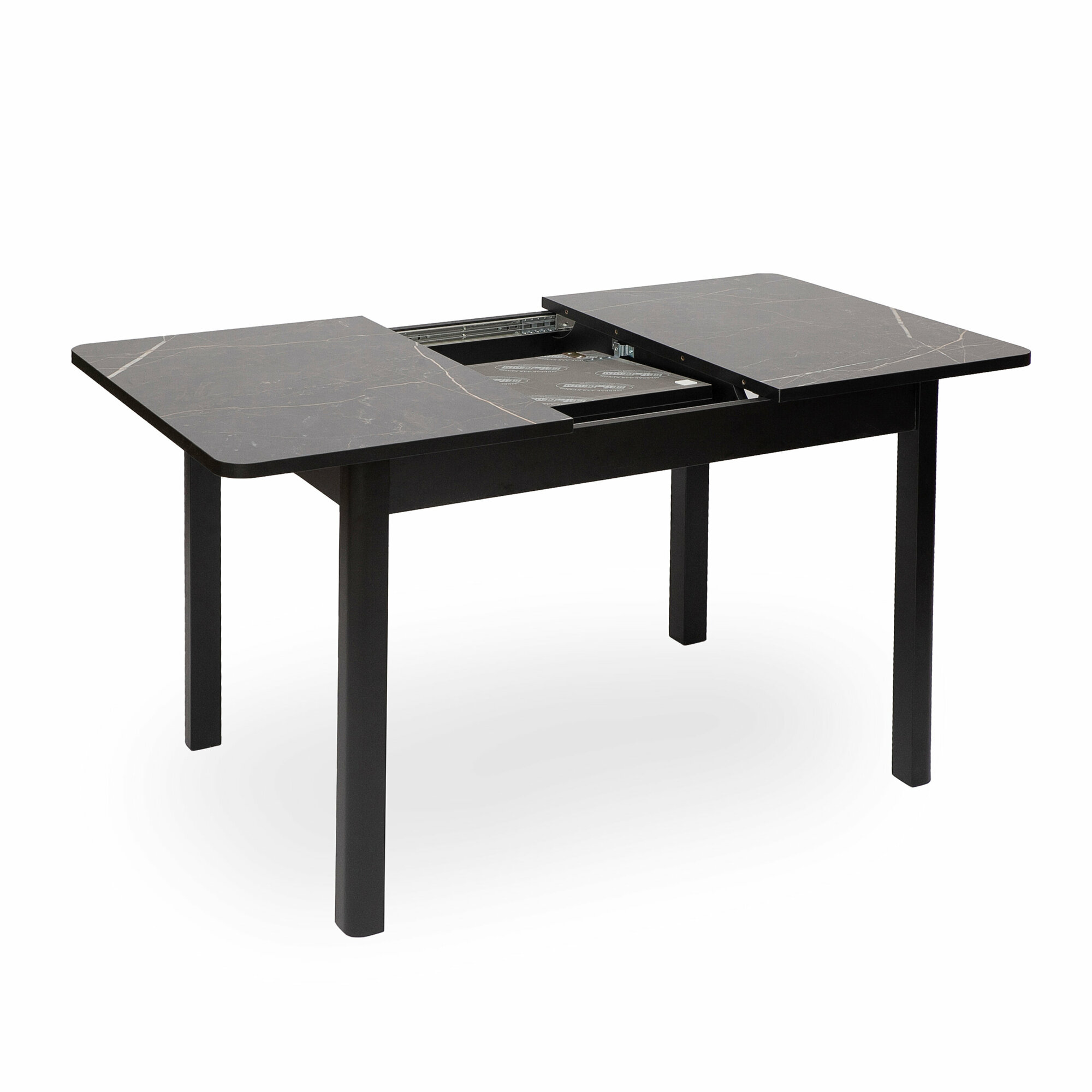 Стол раздвижной гранд-с, 120/170х79, мрамор черный глянцевый, черный