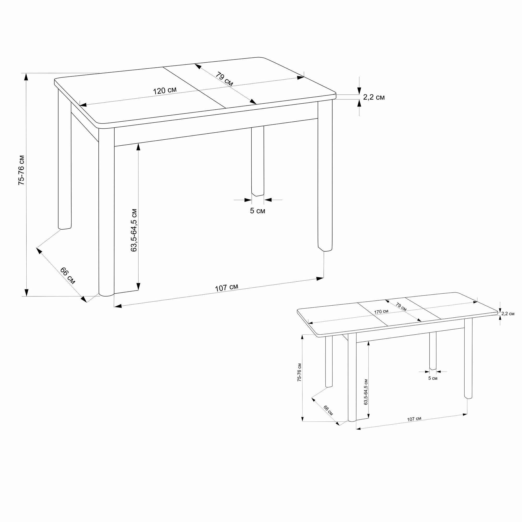 Стол раздвижной гранд-с, 120/170х79, мрамор белый, черный