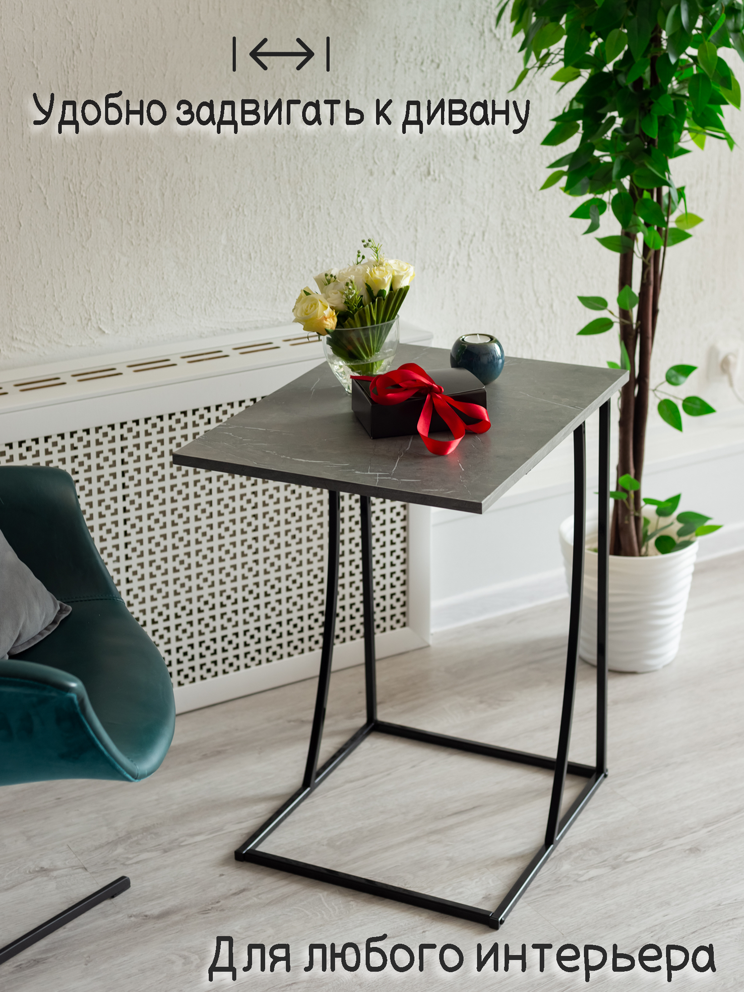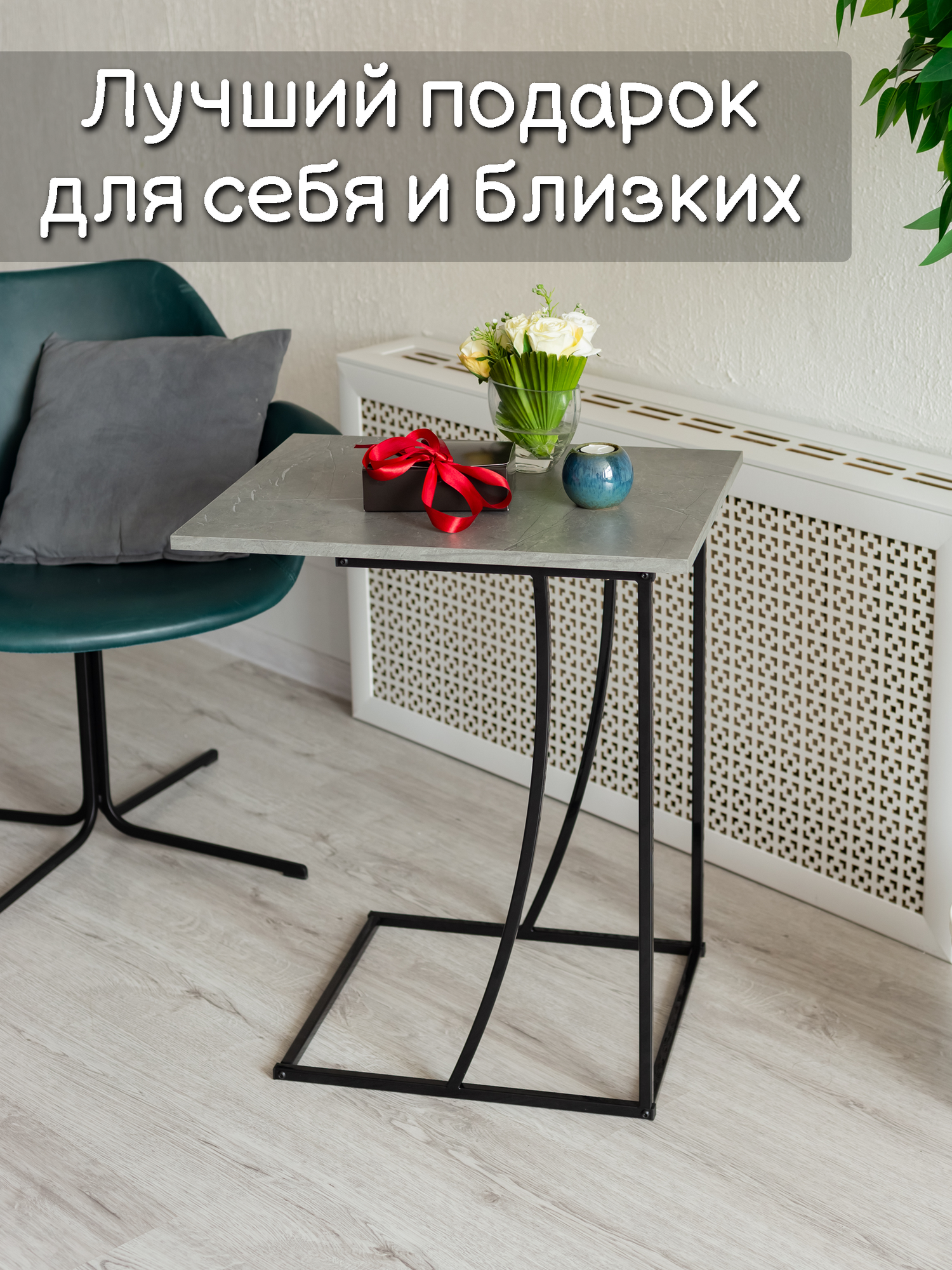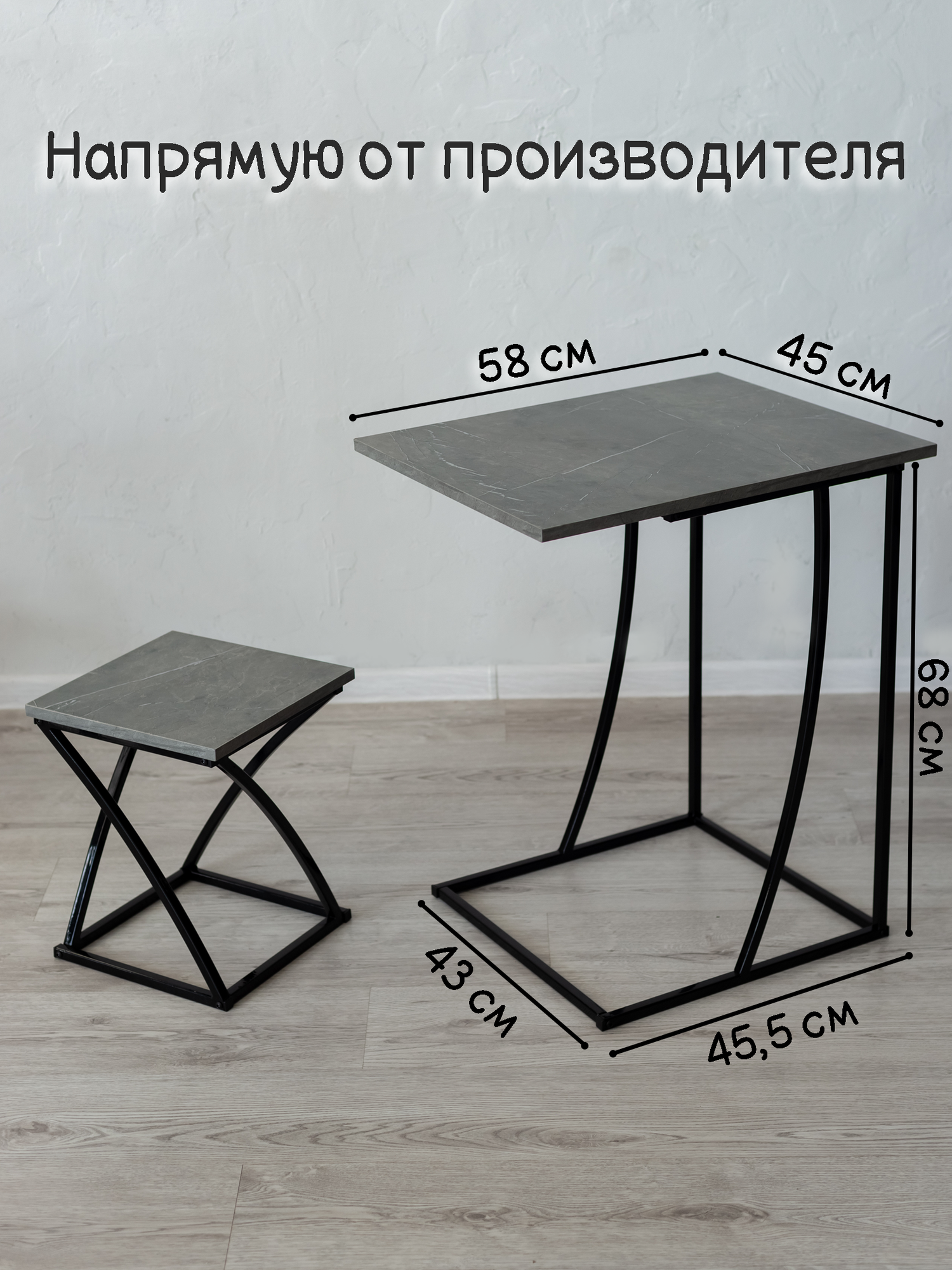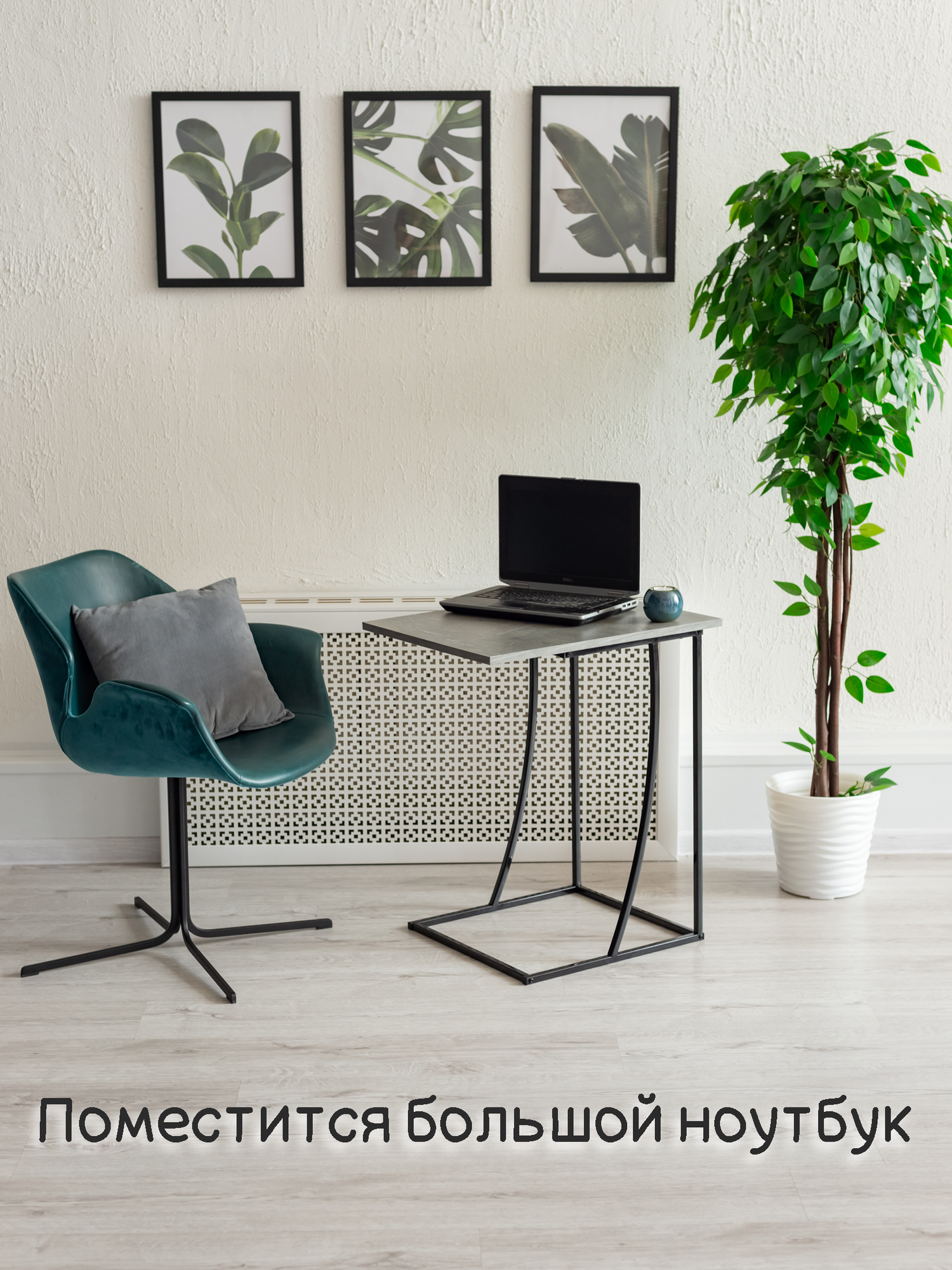Стол приставной журнальный Лофт для ноутбука, графит темный, 58х45х68см интересное: