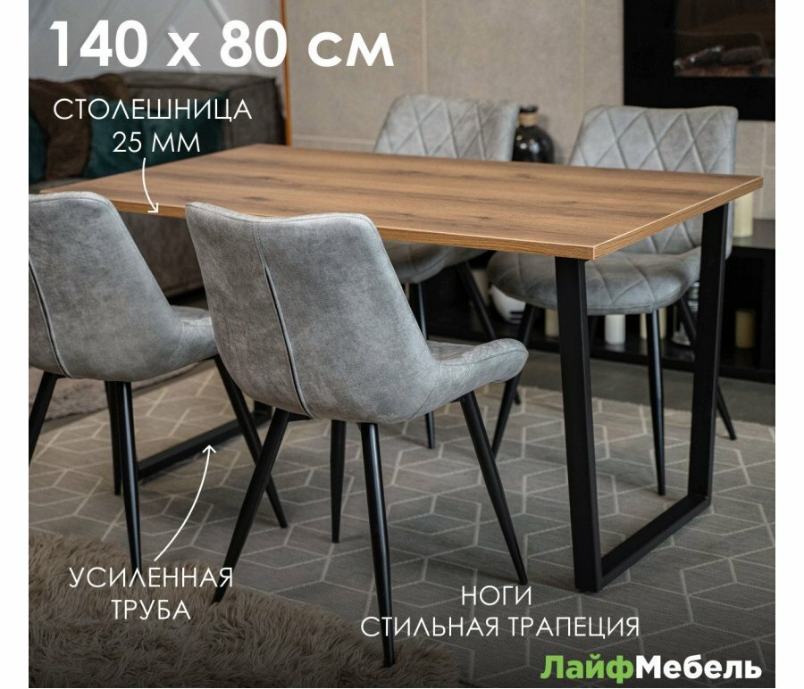 LM.RU Стол Лота Лофт 140 25 мм дуб делано темный / черный матовый ЛайфМебель Лота Лофт 140 25 мм дуб делано темный / черный матовый