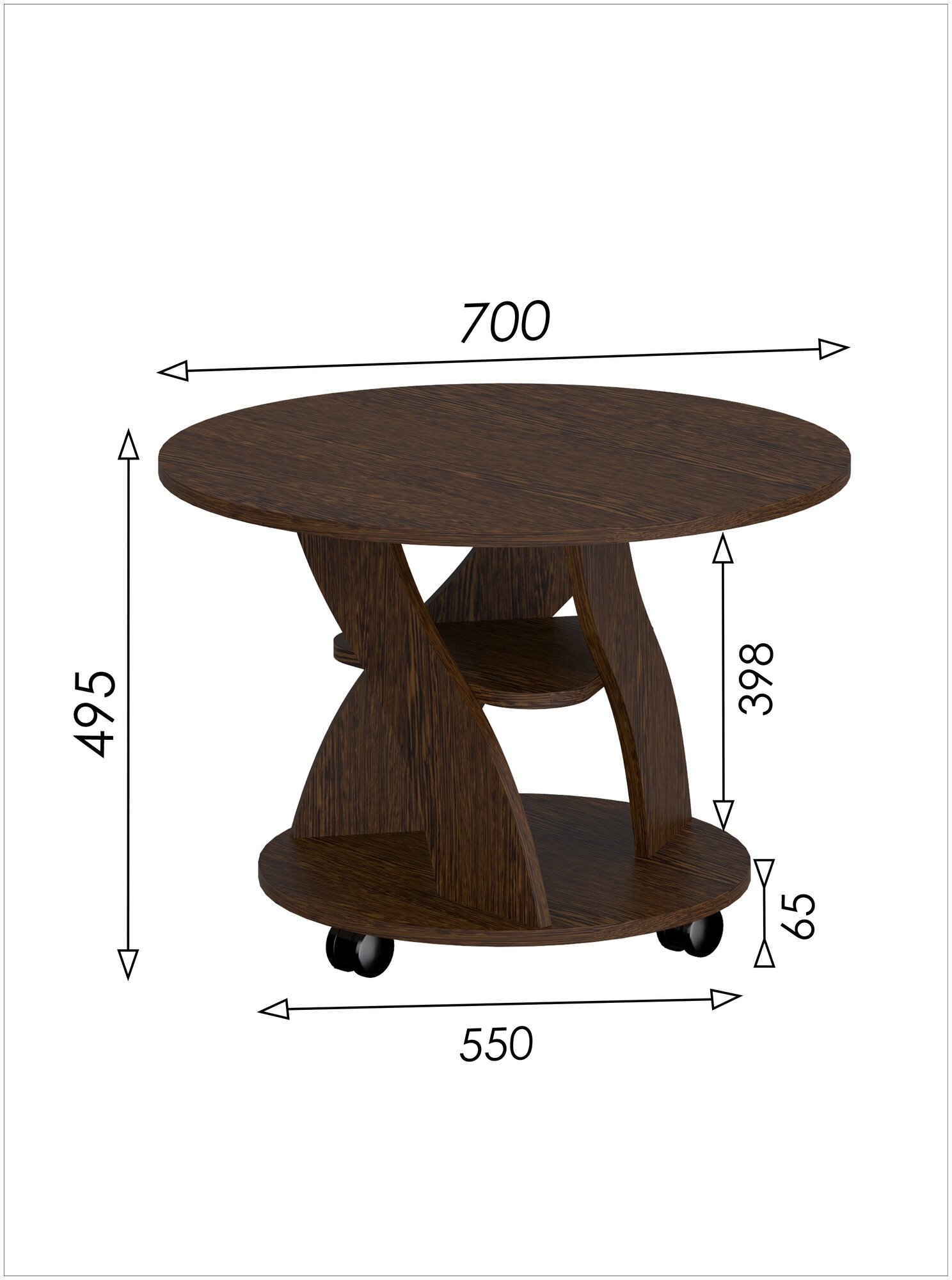 СохранитьЖурнальный столик №1 кофейный книжный сервировочный круглый с полкой на колесах стеллаж ЛДСП 70х70х49.5см венге коричневый интересное: