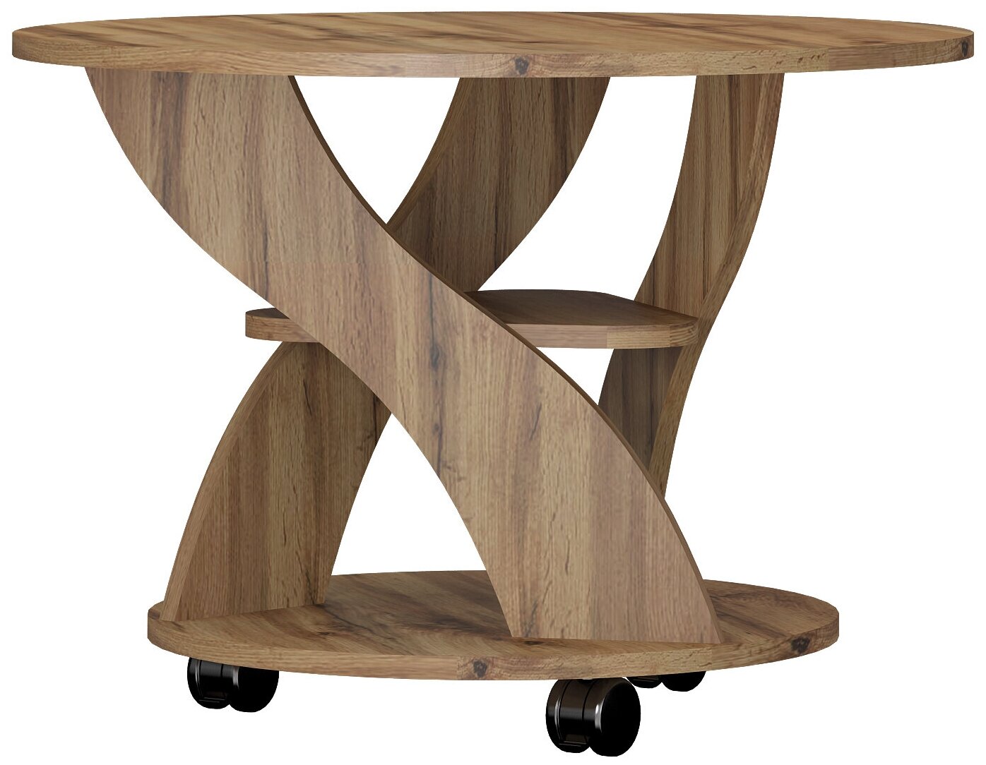 СохранитьЖурнальный столик №1 кофейный книжный сервировочный круглый с полкой на колесах стеллаж ЛДСП 70х70х49.5см дуб крафт золотой интересное: