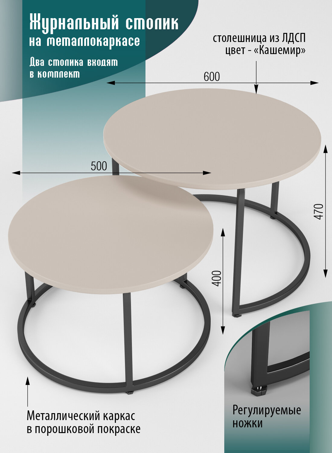 Купить Столы журнальные комплект 2 шт. Разборные.Кашемир/черный