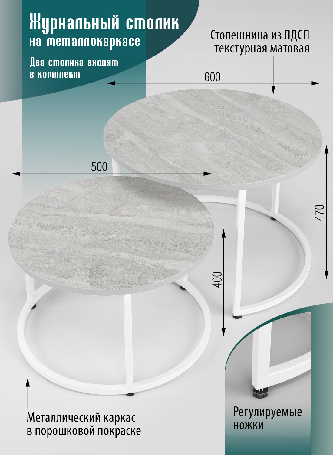 Комплект журнальных столов DiX HOME "Дуэт", круглый, белый мрамор, 2 штуки