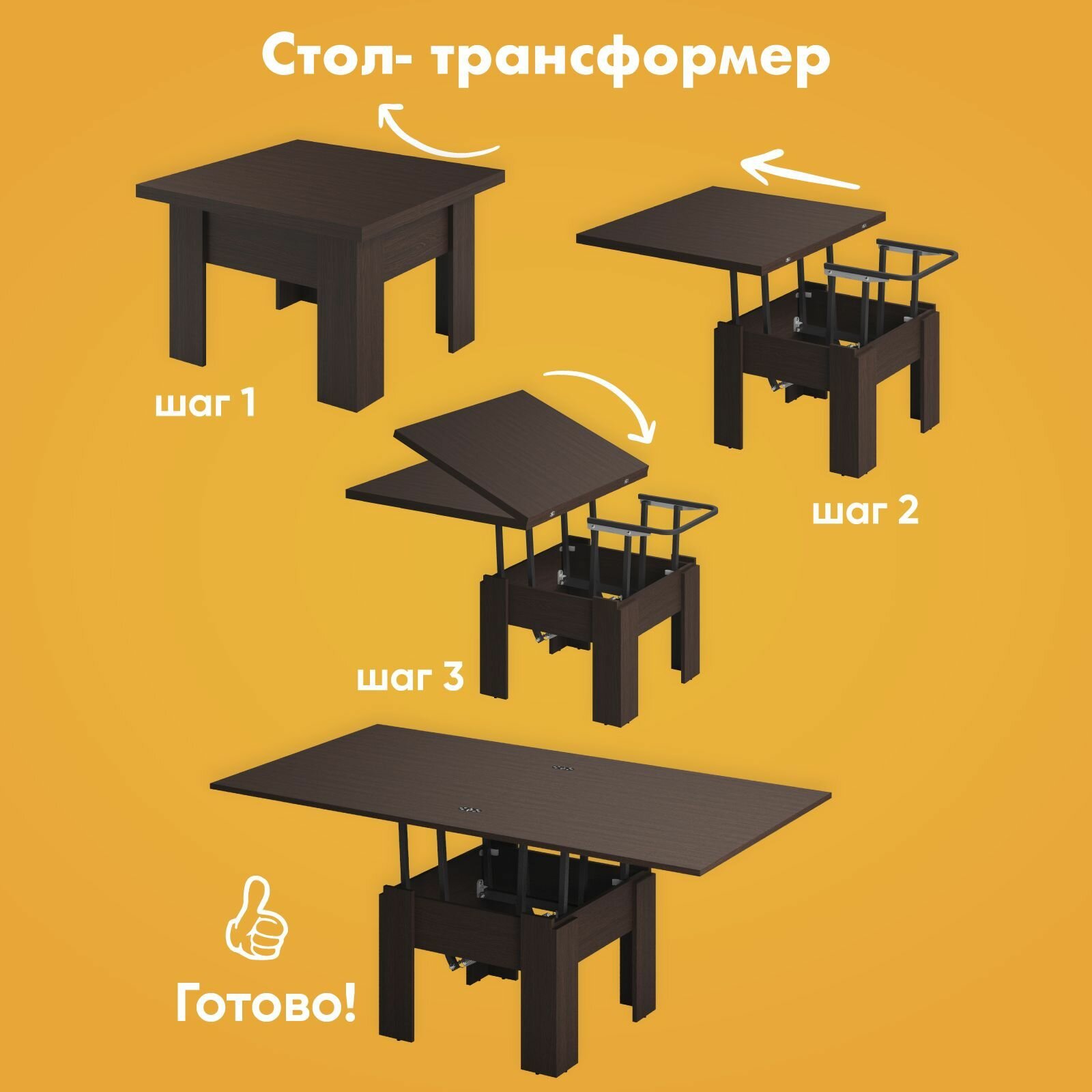 СохранитьСтол трансформер журнальный Элит, обеденный, стол кухонный раскладной, лофт, ЛДСП, коричневый, АМИ мебель Беларусь интересное: