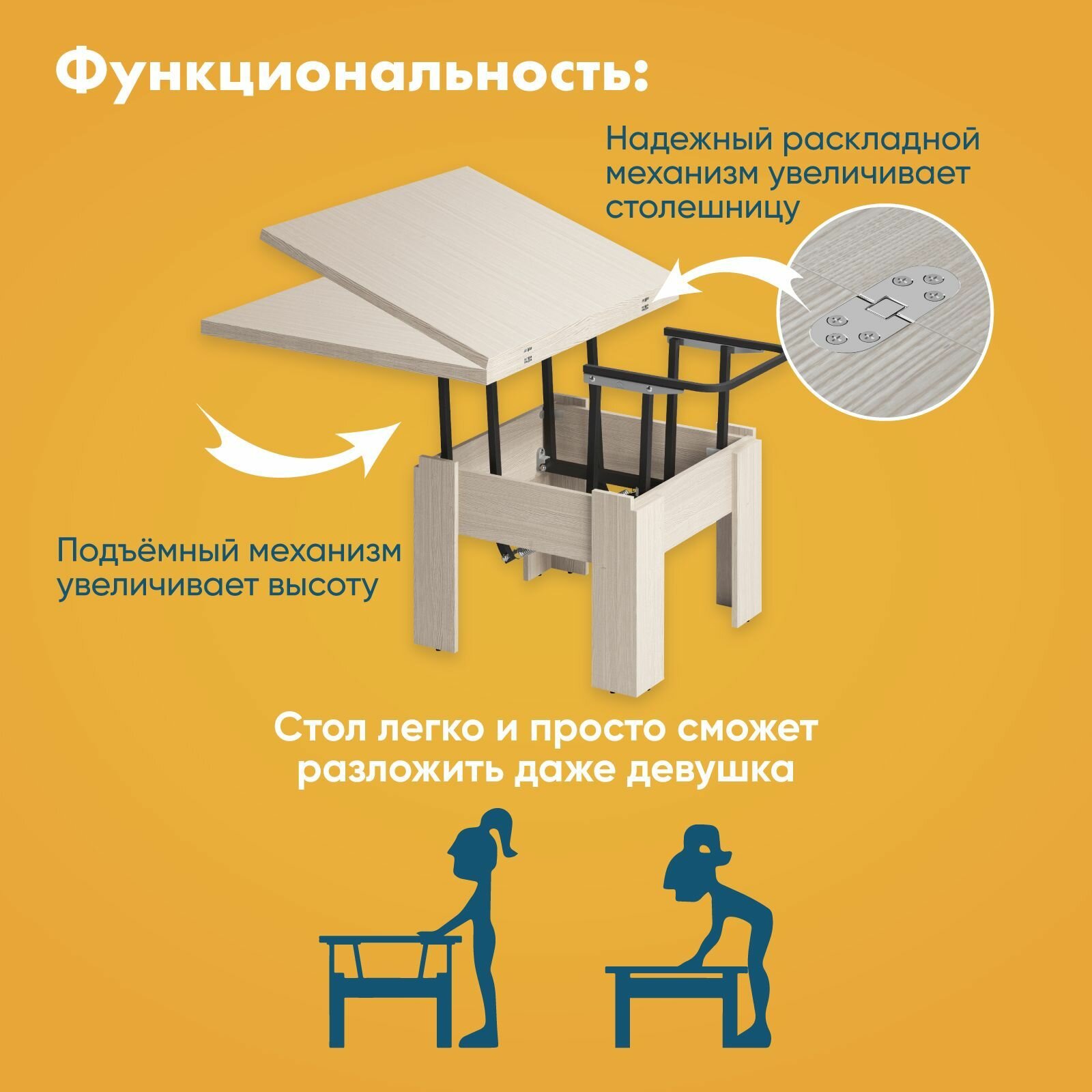 Стол трансформер журнальный Элит, обеденный, стол кухонный раскладной, лофт, ЛДСП, бежевый, АМИ мебель Беларусь
