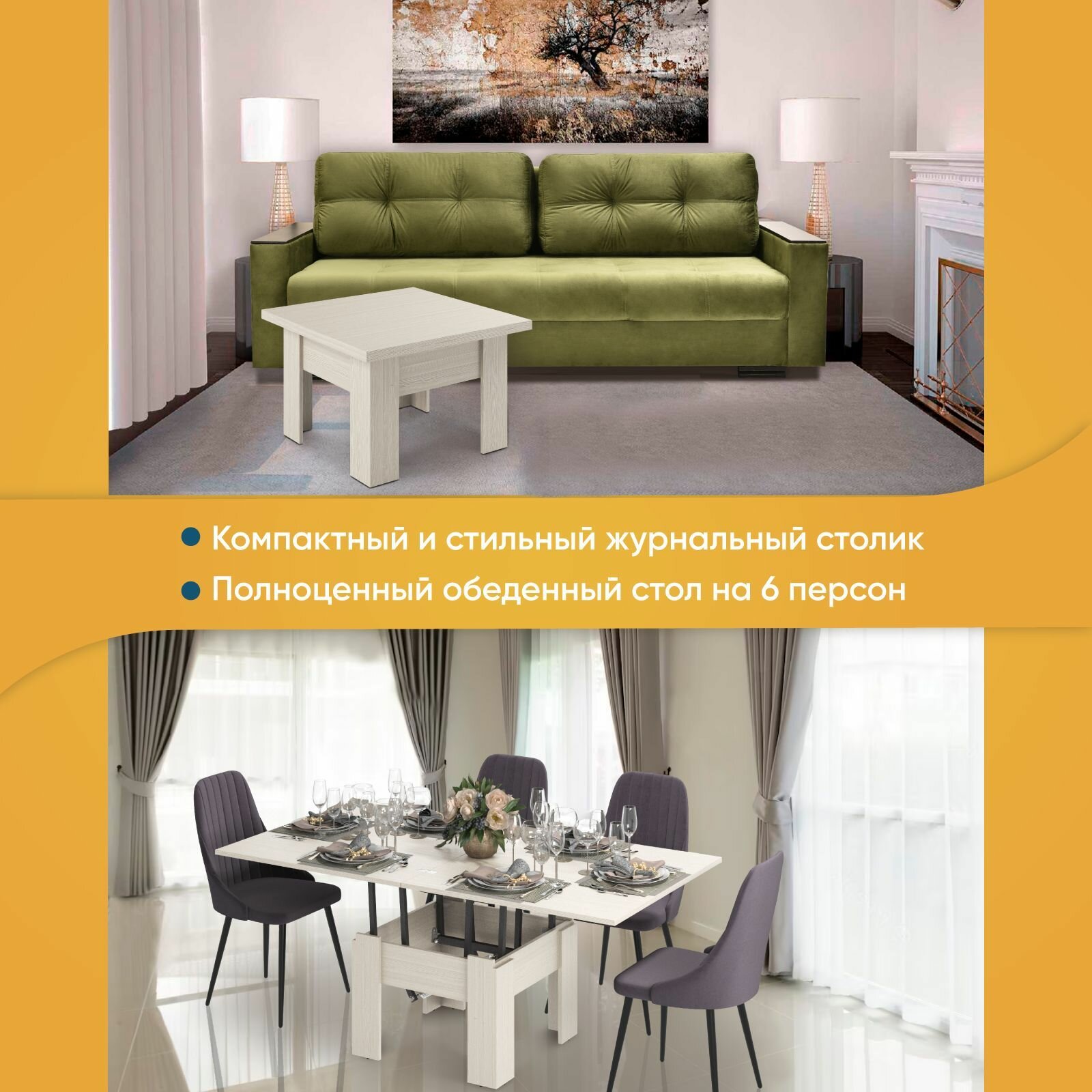Стол трансформер журнальный Элит, обеденный, стол кухонный раскладной, лофт, ЛДСП, белый, АМИ мебель Беларусь