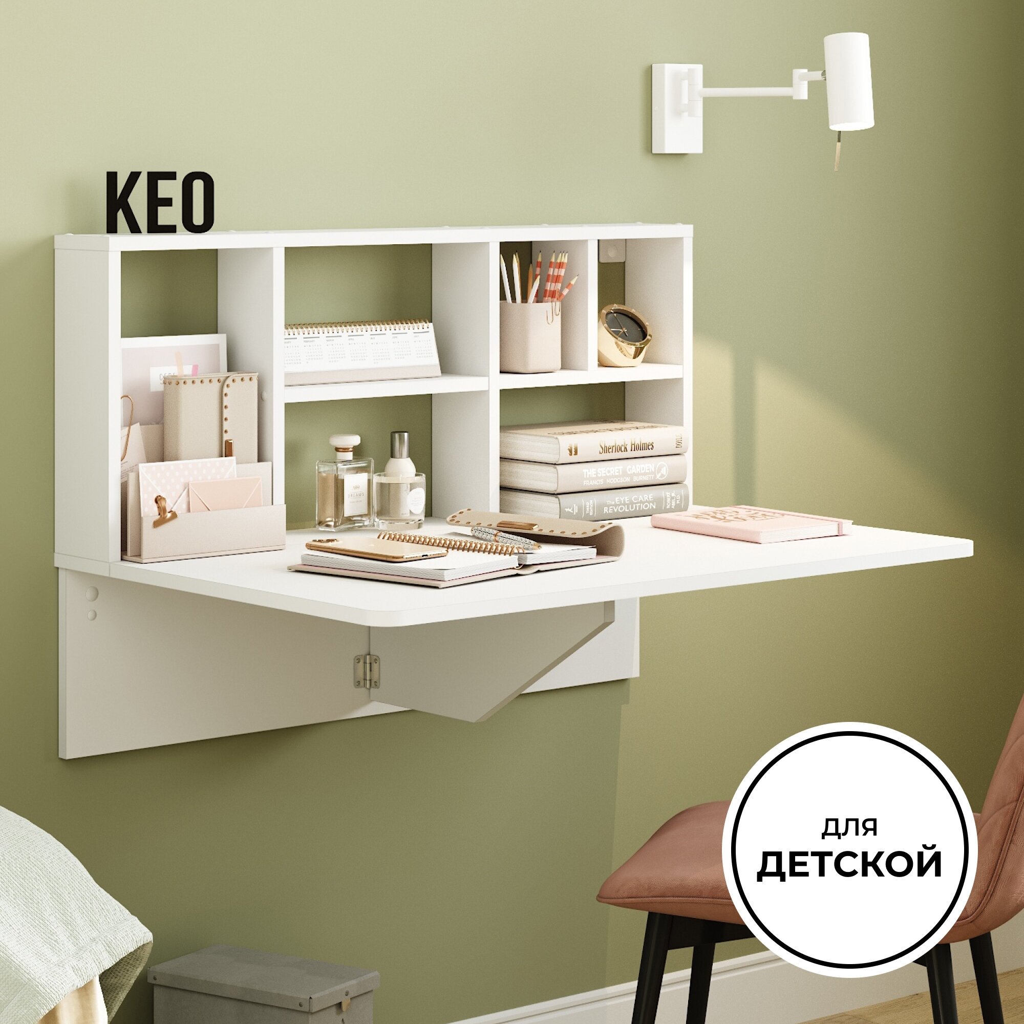 Стол навесной (подвесной) складной откидной кухонный 60x42.4x23.6 трансформер Кео СТМ-900 белый