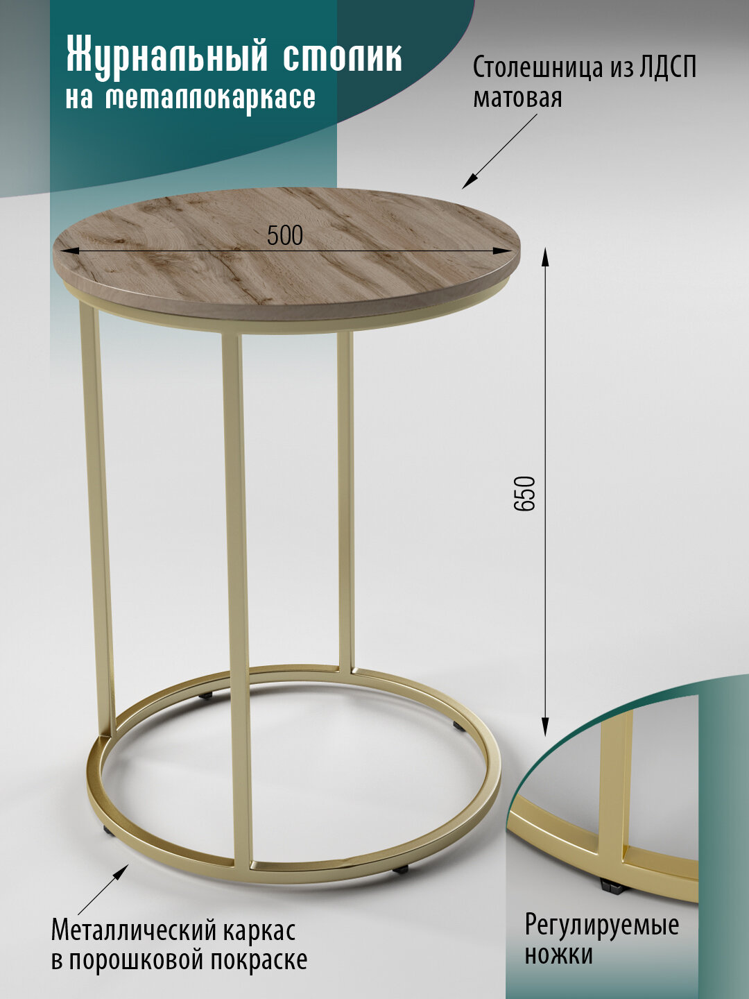 СохранитьСтол журнальный приставной круглый дуб/золотой интересное: