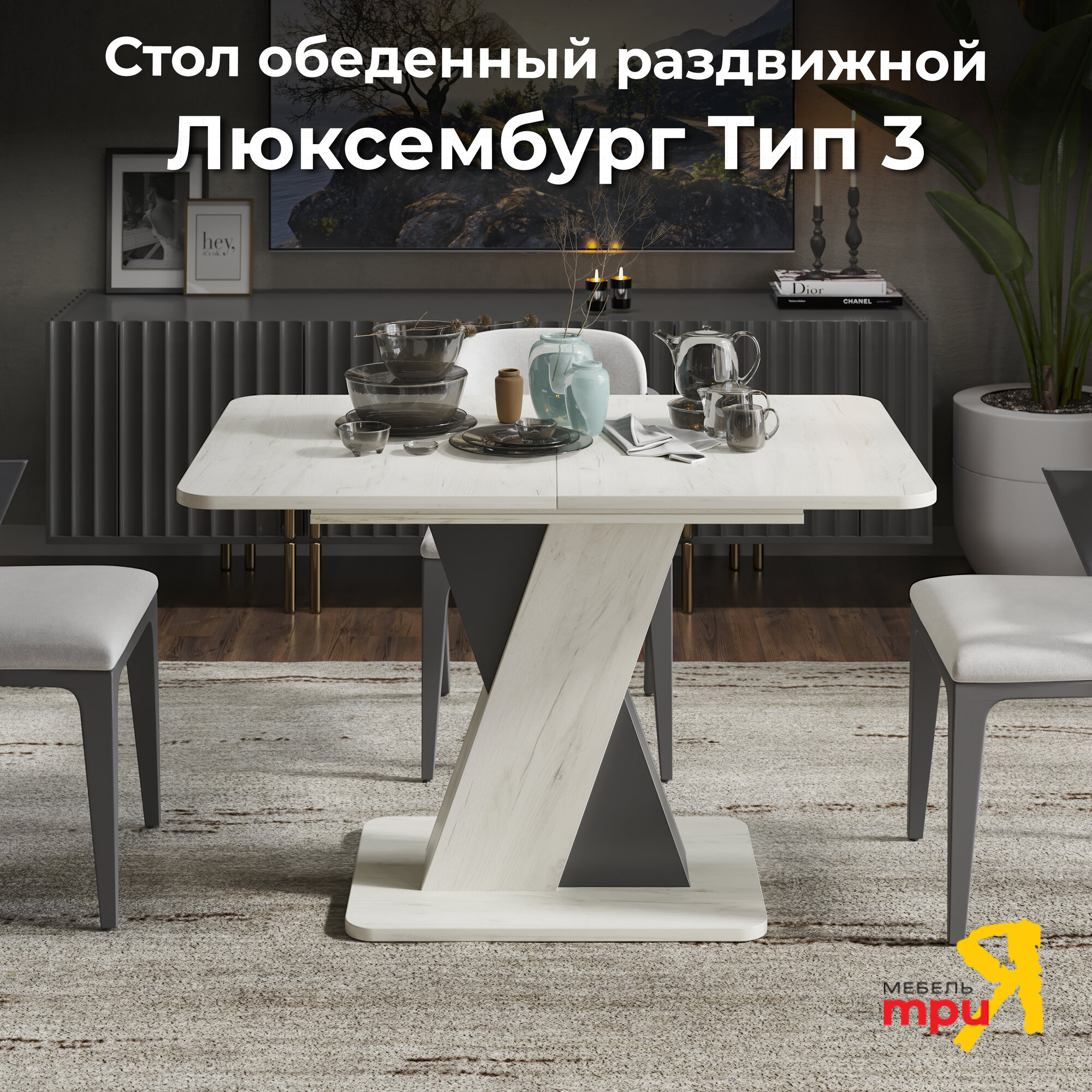 Стол обеденный раздвижной "Люксембург Тип 3" (Дуб крафт белый/Серый)