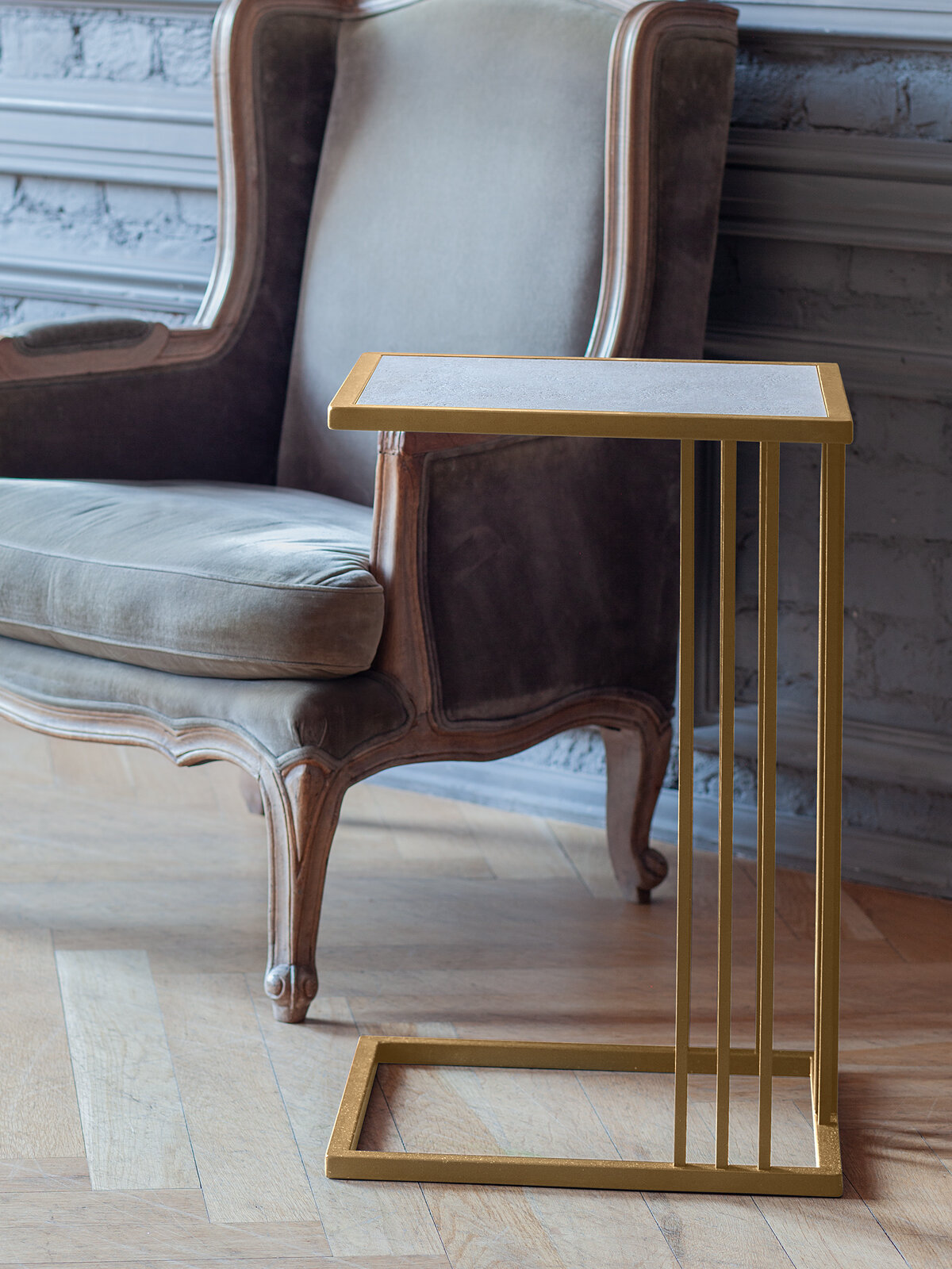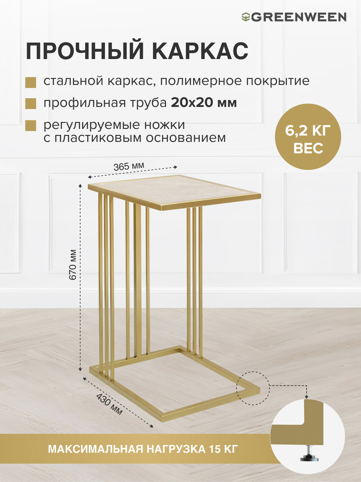 Cтолик приставной SOHO, золотой, столешница керамика Ivory, 365х430х670 интересное: