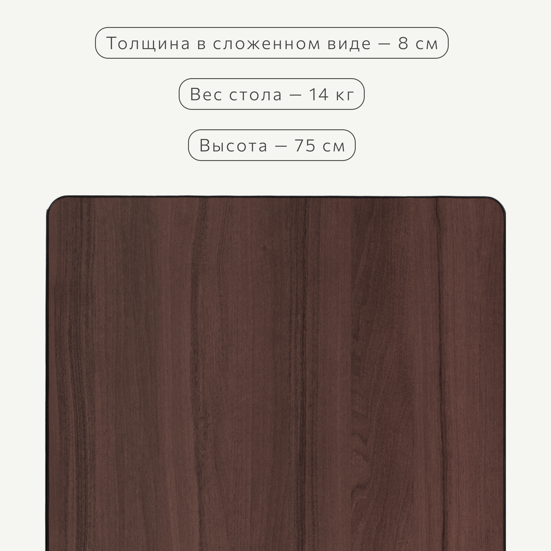 Стол складной раскладной прямоугольный кухонный, письменный, 60х120х75 см столешница - орех, каркас - черный интересное: